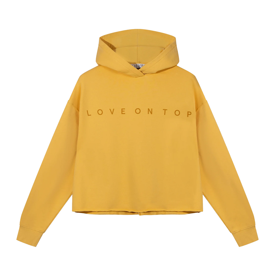 10DAYS Sweater „Statement Love“. Der 10DAYS Sweater „Statement Love“ in Gelb setzt ein modisches Statement und bringt gleichzeitig lässigen Komfort in deinen Look. Der Oversized Fit Hoodie ist aus weichem LA-Fleece gefertigt und fühlt sich besonders angenehm auf der Haut an – perfekt für entspannte Casual-Outfits mit modernem Charakter. Der „Love on Top“-Rubberprint auf der Brust sorgt für einen markanten, typischen 10DAYS-Look. Die Kapuze und die Rippbündchen an den Ärmeln unterstreichen den sportlich-lässigen Stil, während der ungesäumte Abschluss dem Hoodie eine bewusst entspannte Note verleiht. Die Oversized-Passform sorgt für einen lockeren Fall und macht den Sweater zum idealen Begleiter für gemütliche und stilvolle Alltagslooks. Gefertigt in Portugal überzeugt das Modell zudem mit hochwertiger Verarbeitung.