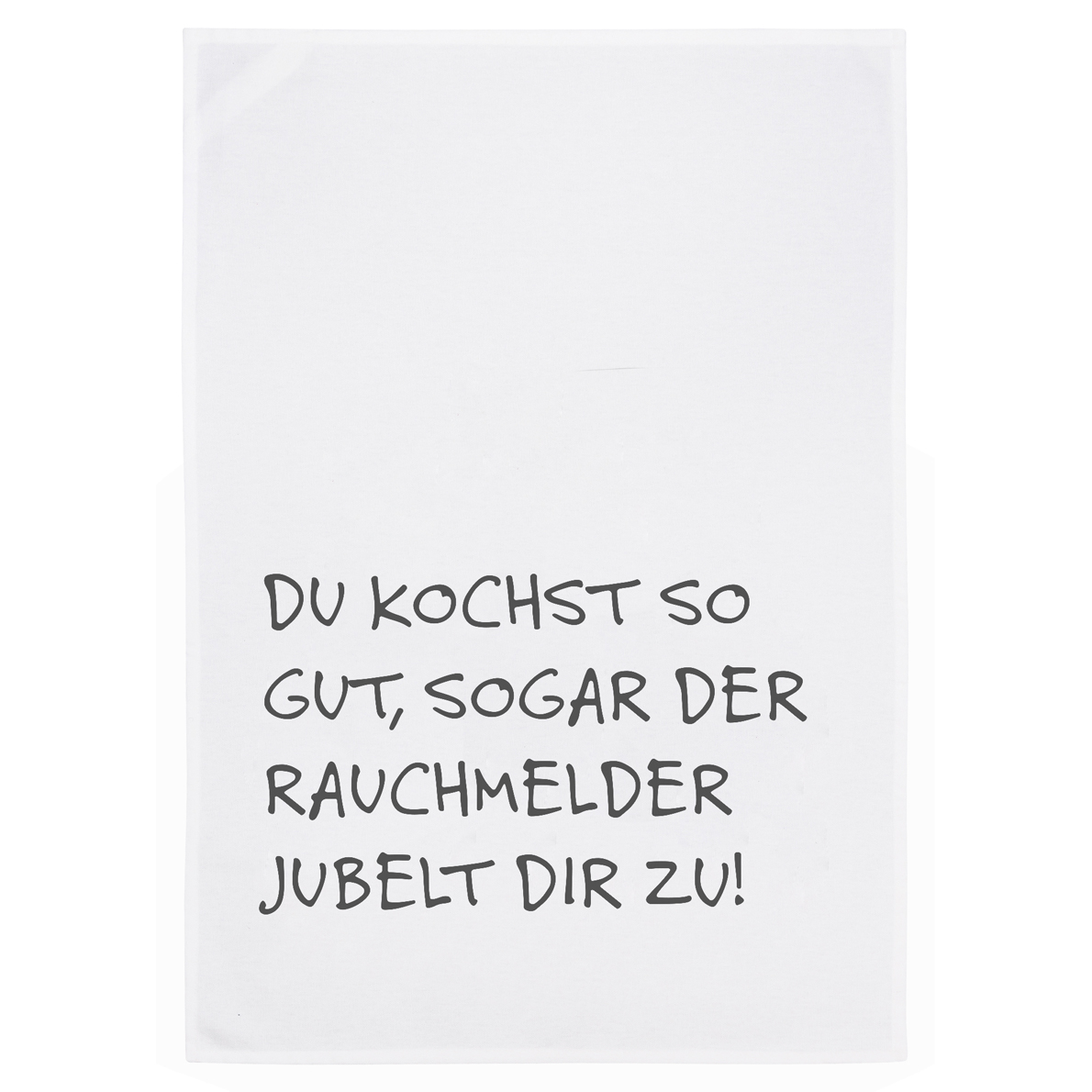 17;30 Geschirrtuch weiß “Applaus vom Rauchmelder”