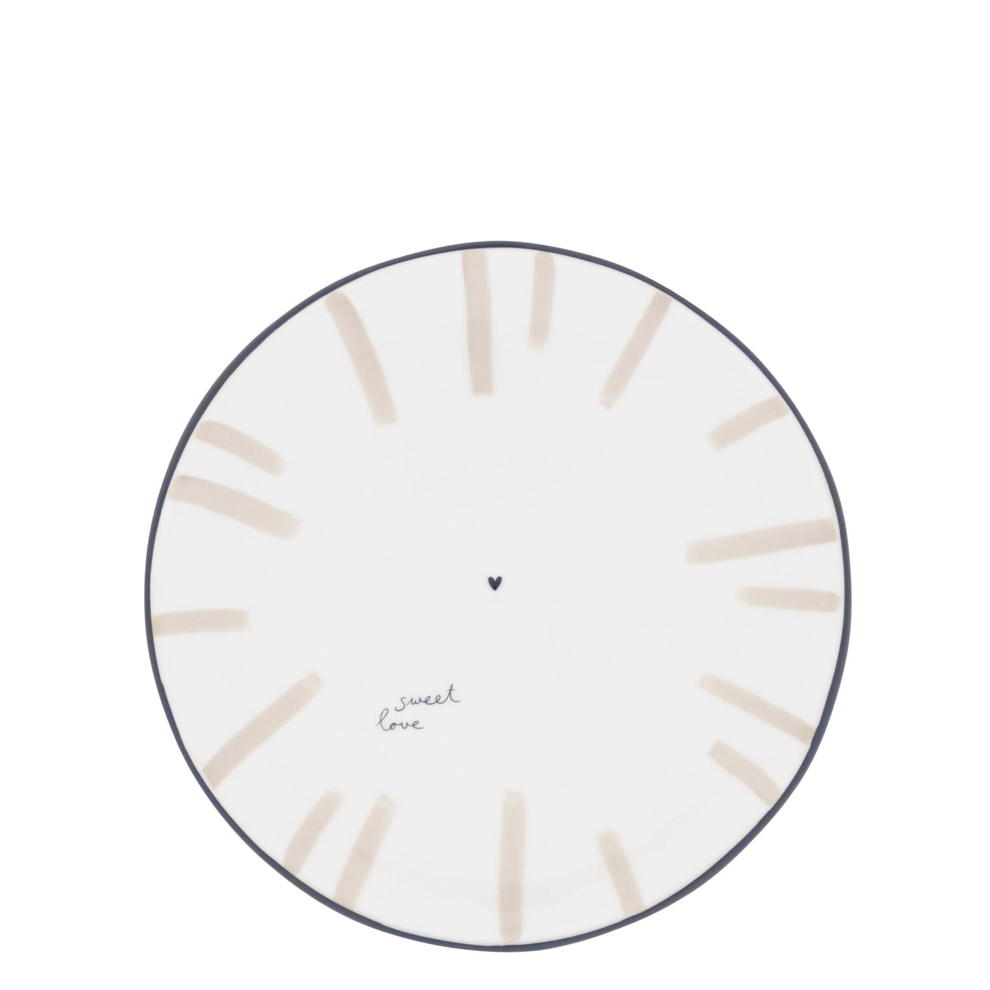 Bastion Collections Dessertteller „Big Stripes sweet love“. Die perfekte Größe für deinen Kuchentafel. Der super schöne Dessertteller von Bastion Collections hat die perfekte Größe für ein leckeres Croissant, selbstgemacht Stullen oder frisches Obst. Das schlichte Design des Tellers, passt sehr gut zu allen Bastion Collections Tassen.