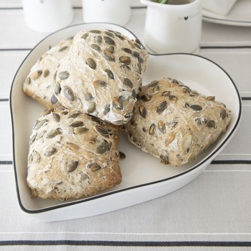 Bastion Collections Schale „Herz White Black Heart“. Verleihe deinen süßen Kreationen das perfekte Ambiente mit der herzförmigen Schale von Bastion Collections. Mit ihrer süßen Form und dem schlichten, stilvollen Design ist diese Schale ein echter Hingucker auf jeder Kaffeetafel. Die sanften Linien und das hochwertige Material machen sie ideal, um Gebäck oder kleine Snacks mit einer Extraportion Charme zu servieren. Ob für besondere Anlässe oder den alltäglichen Genuss – diese Schale zaubert ein Lächeln auf jedes Gesicht und verleiht deinen Lieblingsmomenten eine besondere Note. Ein kleines Herzstück für deine Küche, das Liebe in jeden Bissen bringt.