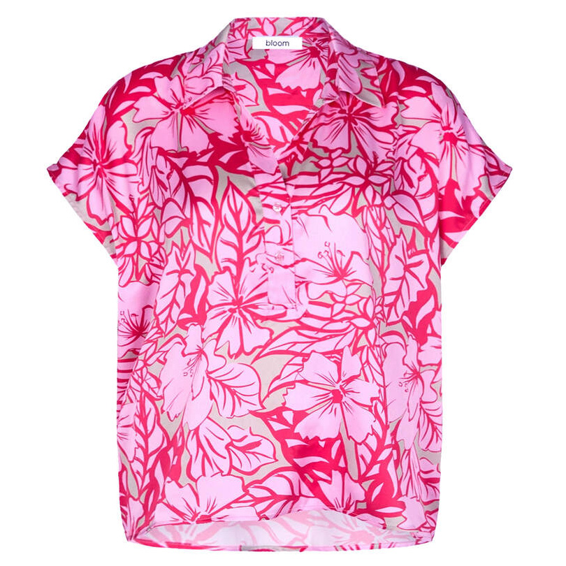 Bloom Bluse „Polo Flower“. Ausdrucksstark, feminin und luxuriös: Die Bluse „Polo Flower“ von Bloom begeistert mit einem lebendigen floralen Allover-Print in leuchtenden Pink- und Rosétönen. Das moderne Design trifft auf eine lässig-elegante Polo-Silhouette und verleiht dem Look eine stilvolle Leichtigkeit.