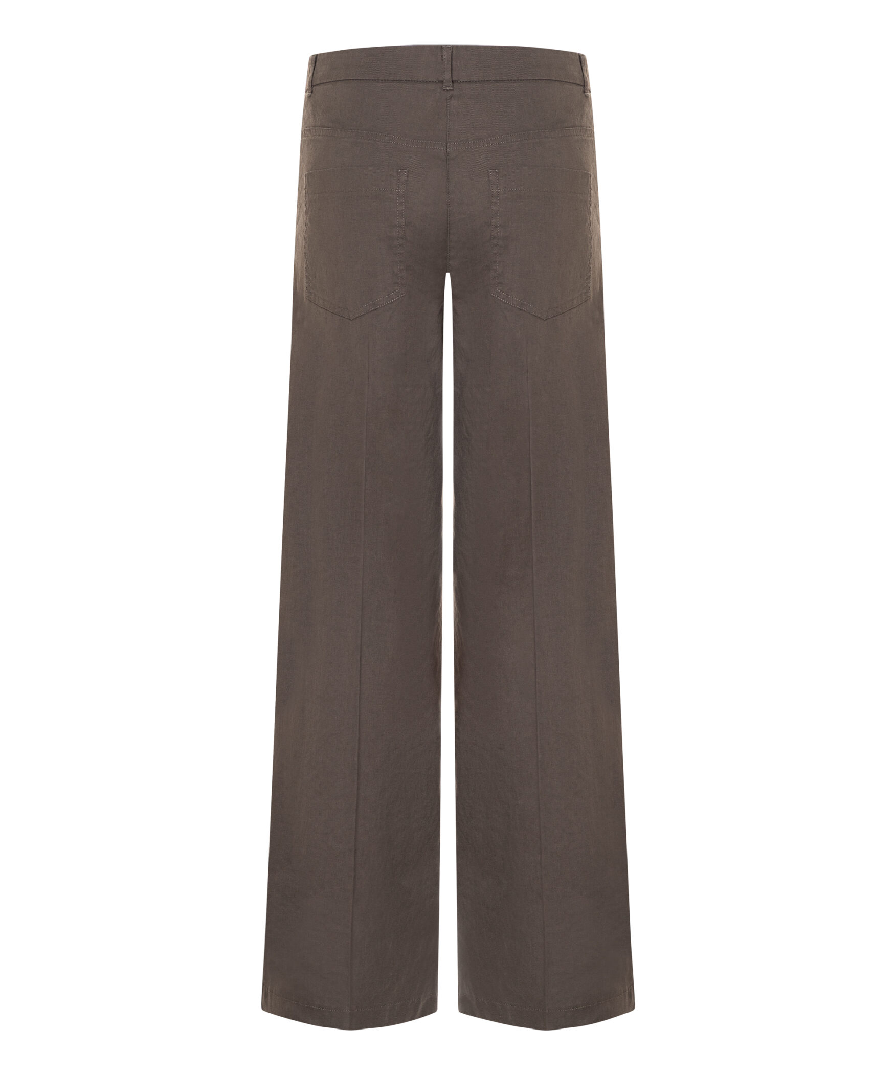 Cambio Hose „Adrienne“ wide leg Grape Leaf. Wide Leg Jeans ADRIENNE in einer langen Beinlänge. Die weite, lange Hose im Leinen-Mix vereint modernes Design mit hochwertigem Tragekomfort und sorgt für ein angenehmes Gefühl auf der Haut und eine edle Optik. Praktische Details wie seitliche Eingrifftaschen sowie klassische Gesäßtaschen runden das Design optimal ab.