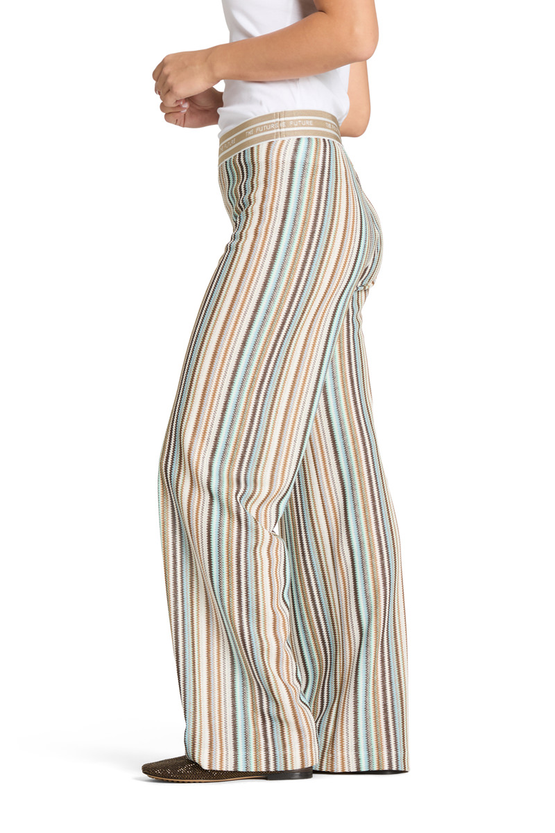 Cambio Hose „Allison Fancy Aqua Coffee“. Die Hose überzeugt durch eine hohe Leibhöhe und eine gerade, längliche Beinsilhouette – ideal für eine elegante, glatte Linienführung. Das lange Bein mit einer 32-inch-Innennaht sorgt für eine stilvolle, längende Optik. Die hohe Taille sorgt für eine schmeichelnde Passform und hervorragenden Halt, der elastische Taillenbund mit eingewebtem Wording für zusätzlichen, diskreten Style.