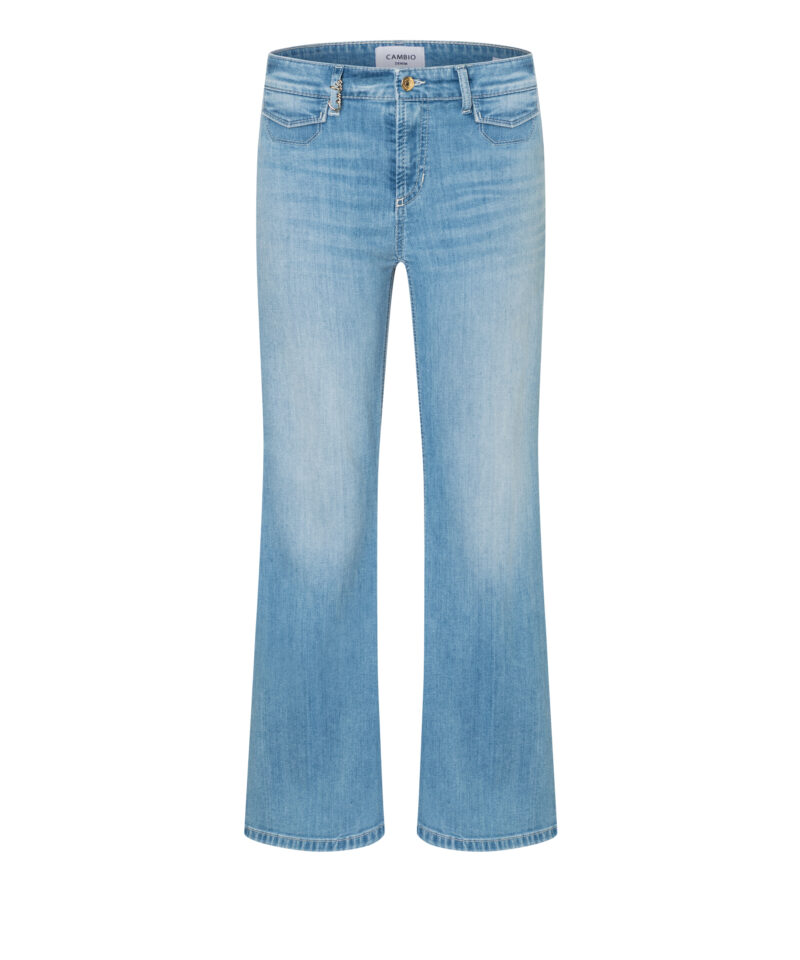 Cambio Jeans „Fabienne Pocket“ Lifely Sunny used“. Flared Denim FABIENNE in verkürzter Länge. Mit ihrer angesagten Flared-Silhouette bringt FABIENNE POCKET coole Lässigkeit und modernen Denim-Style in jeden Look. Die robuste Qualität mit Elasthan sorgt für angenehmen Tragekomfort und optimale Bewegungsfreiheit. Die hellblaue Denim mit moderner Waschung – ideal für einen urbanen, selbstbewussten Look. Ein Statement-Piece, das authentischen Denim neu definiert und perfekt für den Sommer.
