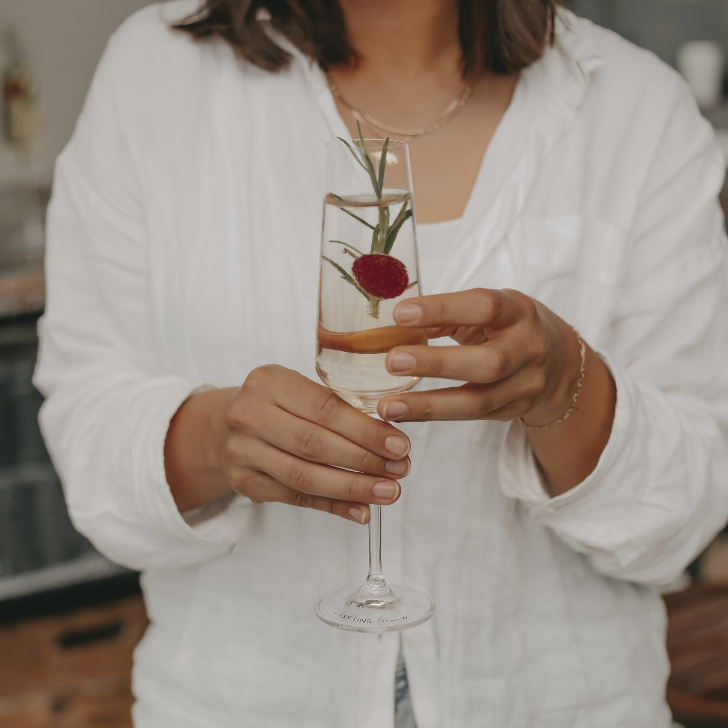 Eulenschnitt Sektglas „Lass uns feiern“. Feierlich begrüßen wir den neuen Zuwachs in der Kategorie Gläser: Das elegante Sektglas Lass uns feiern. Dieses tulpenförmige Sektglas ist schmal und hat einen hohen Kelch, der nach unten hin kegelförmig zuläuft. Diese Form hält das Aroma und die Kohlensäure deines Sekts besonders lange frisch, sodass du jeden Schluck in vollen Zügen genießen kannst. Das Besondere an diesem Glas ist die liebevolle Botschaft „Lass uns feiern“ auf dem Glasboden. Diese Einladung passt perfekt zu so vielen Anlässen – sei es eine Hochzeit, ein Jubiläum, ein Geburtstag oder einfach ein gemütliches Beisammensein. Mit diesem charmanten Detail lässt sich deine Gäste sicherlich gerne zum Feiern einladen. Mit seiner hochwertigen Verarbeitung und dem ansprechenden Design ist das Sektglas „Lass uns feiern“ nicht nur ein funktionales Glas, sondern auch ein stilvolles Accessoire für jede Feier. Kombiniere es mit anderen Gläsern von Eulenschnitt, um dein Glas-Sortiment perfekt zu ergänzen und jede Tafel in ein festliches Highlight zu verwandeln.