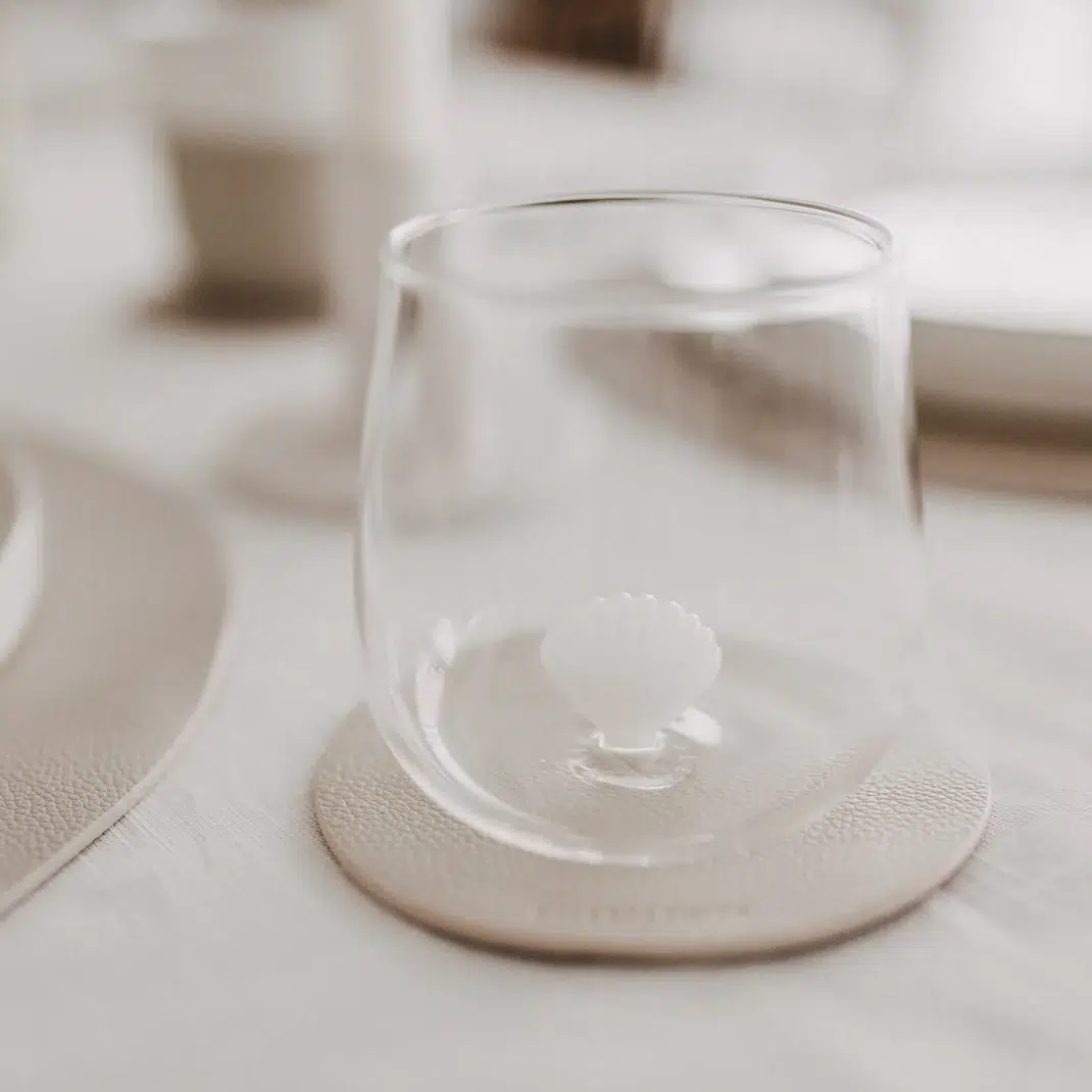 Eulenschnitt Trinkglas „Muschelfigur“. Tauche ein in die maritime Welt von Eulenschnitt – mit dem Trinkglas „Muschelfigur“. Die liebevoll integrierte 3D-Muschel im Inneren macht dieses Glas zu einem besonderen Highlight und bringt einen Hauch von Meer, Sommer und Leichtigkeit in deinen Alltag. Das filigrane Design vereint verspielte Details mit moderner Eleganz und sorgt dafür, dass jedes Getränk zu einem kleinen Blickfang wird – ob im Alltag oder zu besonderen Momenten mit Freunden und Familie. Wie alle Figurgläser ist auch dieses Modell ein zartes Lieblingsstück, das mit Sorgfalt behandelt werden sollte. Bitte vermeide harte Gegenstände wie Eiswürfel oder Glasstrohhalme, um die Muschel im Inneren zu schützen. Zudem ist das Glas nicht hitzebeständig und daher nicht für heiße Getränke geeignet. Trotz seiner feinen Optik ist es alltagstauglich und spülmaschinengeeignet, sodass du lange Freude daran hast – bei gleichzeitig besonderer Ausstrahlung auf deinem Tisch.