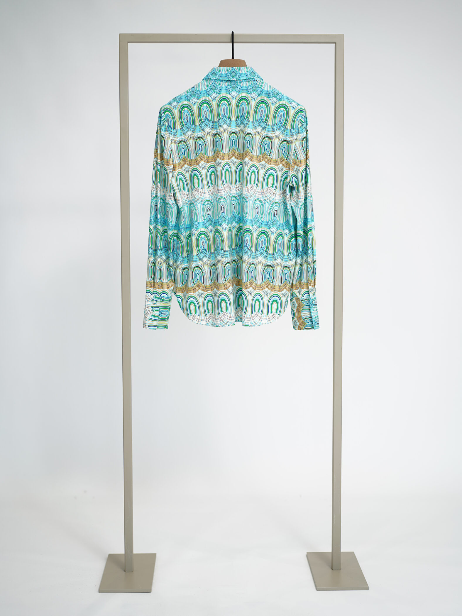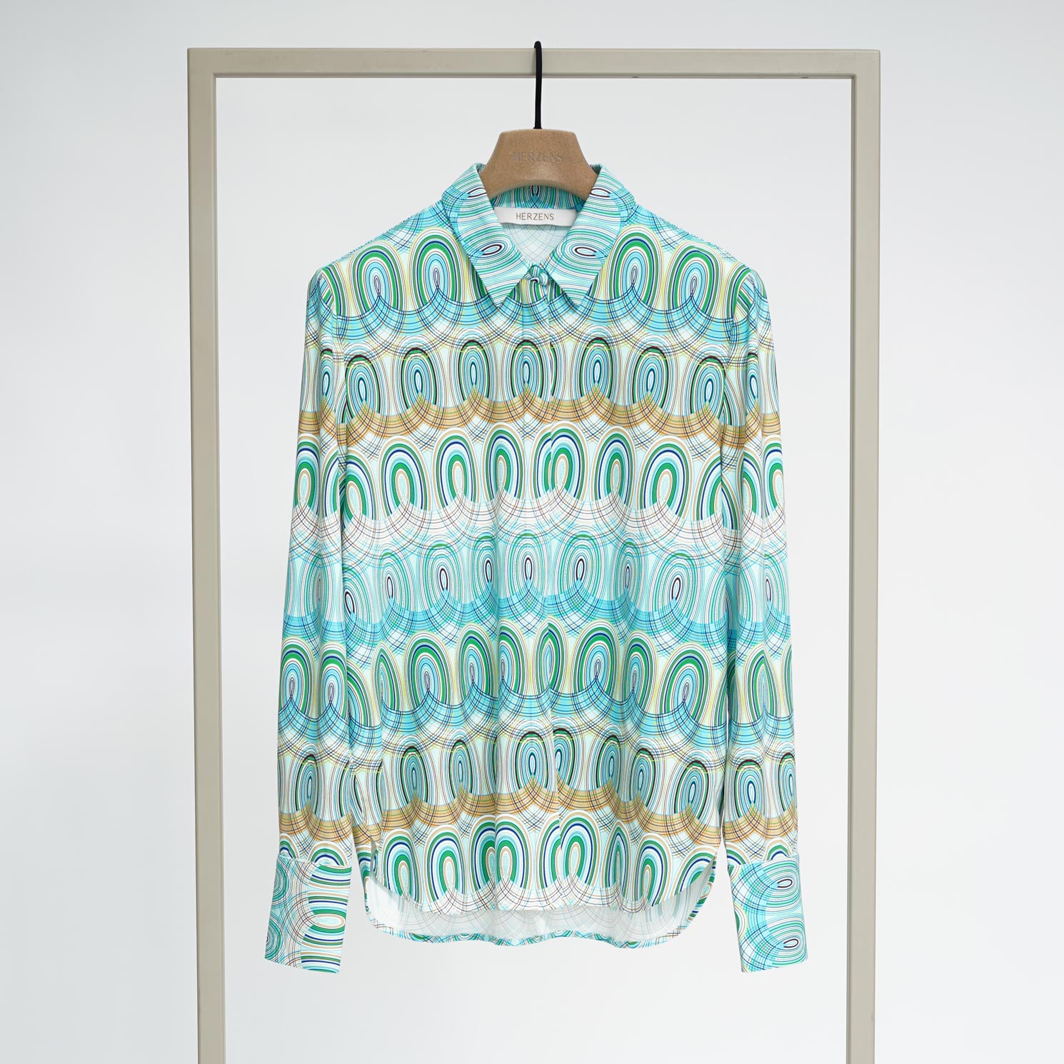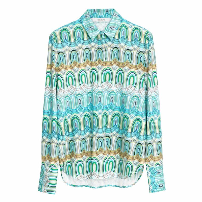Herzen´s Bluse „Petrol Multi“. Diese elegante Bluse von Herzens überzeugt mit einem ausdrucksstarken, farbenfrohen Print und luxuriöser Materialqualität. Der feine Material-Mix sorgt für einen fließenden Fall, angenehmen Tragekomfort und eine perfekte Passform mit leichter Elastizität. Der feminine Hemdblusenkragen mit verdeckter Knopfleiste verleiht der Bluse eine moderne, stilvolle Note, während die langen Ärmel mit Manschetten den Look harmonisch abrunden. Der kunstvolle Allover-Print in wunderschönen Farbnuancen macht dieses Modell zu einem echten Blickfang – ideal für elegante Alltagslooks oder besondere Anlässe. Ein exklusives Lieblingsstück für alle, die hochwertige Materialien und außergewöhnliches Design schätzen.
