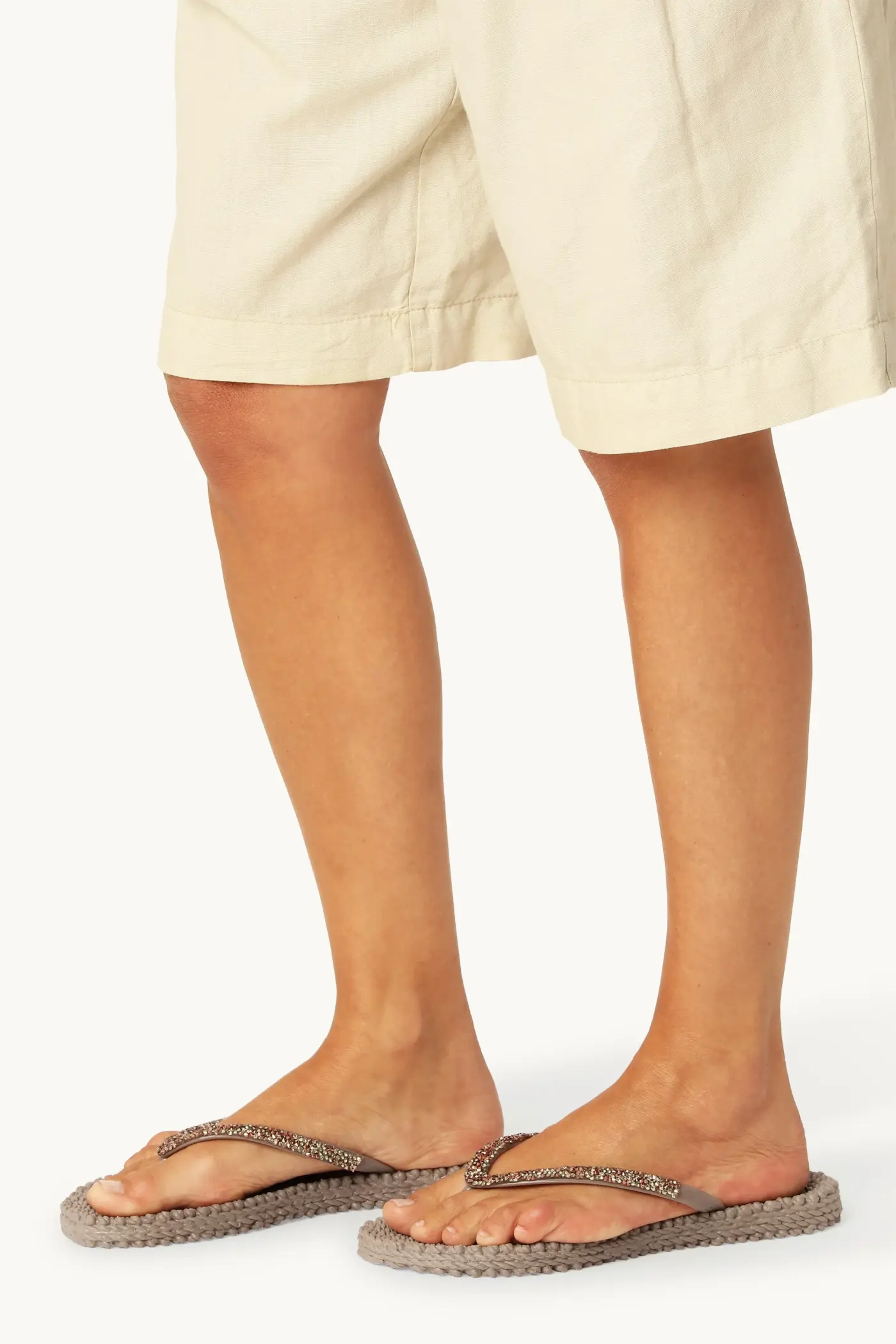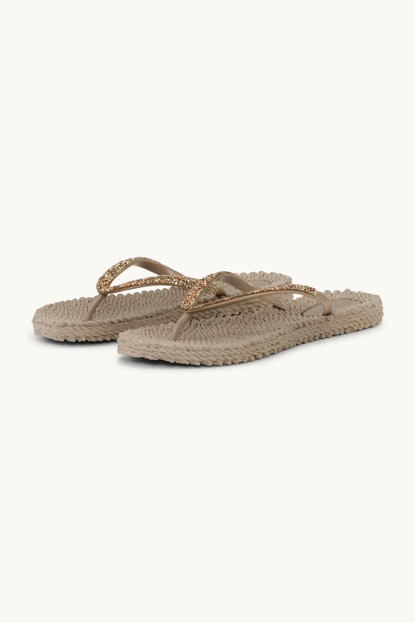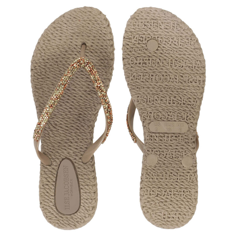 Ilse Jacobsen Flip Flop „Rhinestones“ Atmosphere. Diese flexiblen Cheerful Flip-Flops vereinen sommerliche Leichtigkeit mit einem Hauch Glamour. Der Zehensteg ist mit schimmernden, mehrfarbigen Glitzersteinen verziert und setzt funkelnde Akzente – perfekt für stilvolle Auftritte am Strand oder in der City.