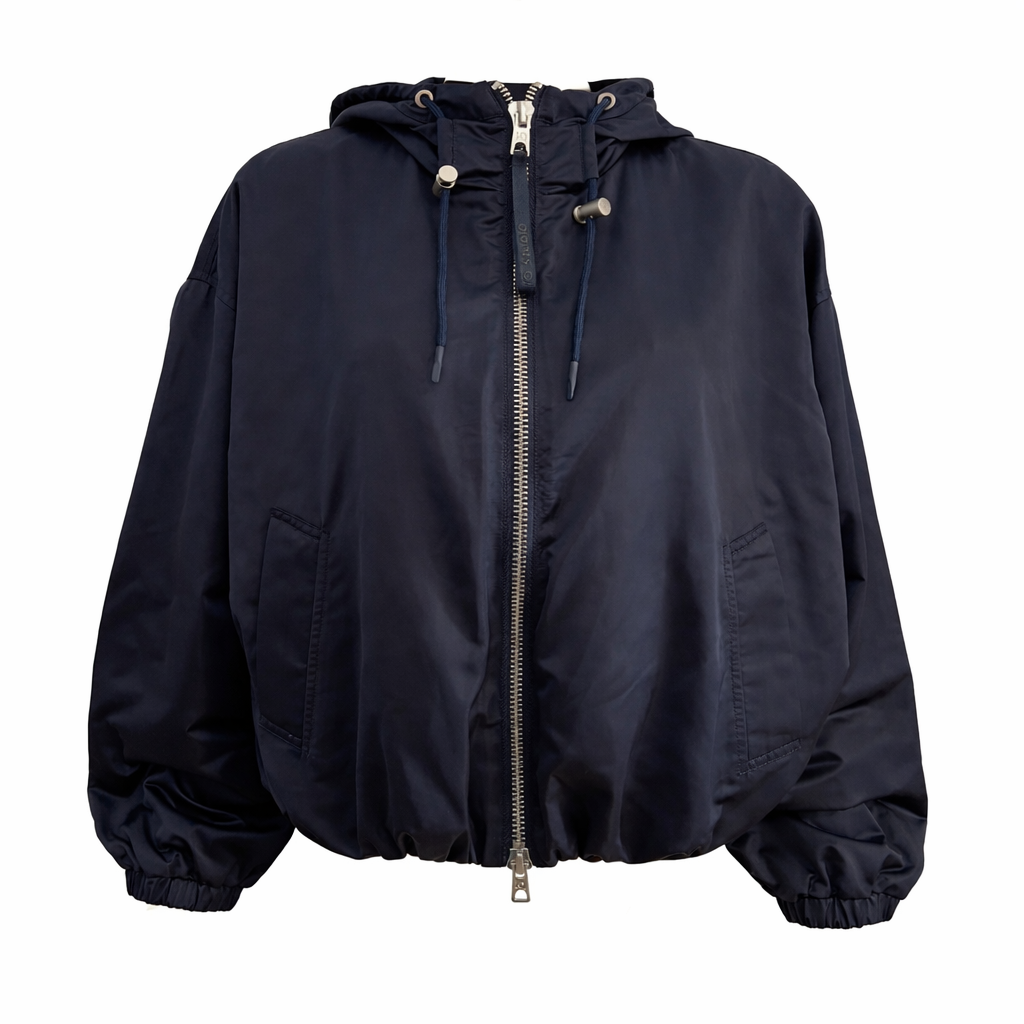 Das glatte, leicht glänzende Material verleiht der Jacke eine edle, fast satinartige Optik und macht sie zum vielseitigen Begleiter – von casual bis chic. Elastische Abschlüsse an Saum und Ärmeln sorgen für eine perfekte Passform und den charakteristischen Blouson-Effekt. Ein unkompliziertes Key-Piece für jeden Tag – minimalistisch, hochwertig und stilvoll zugleich.