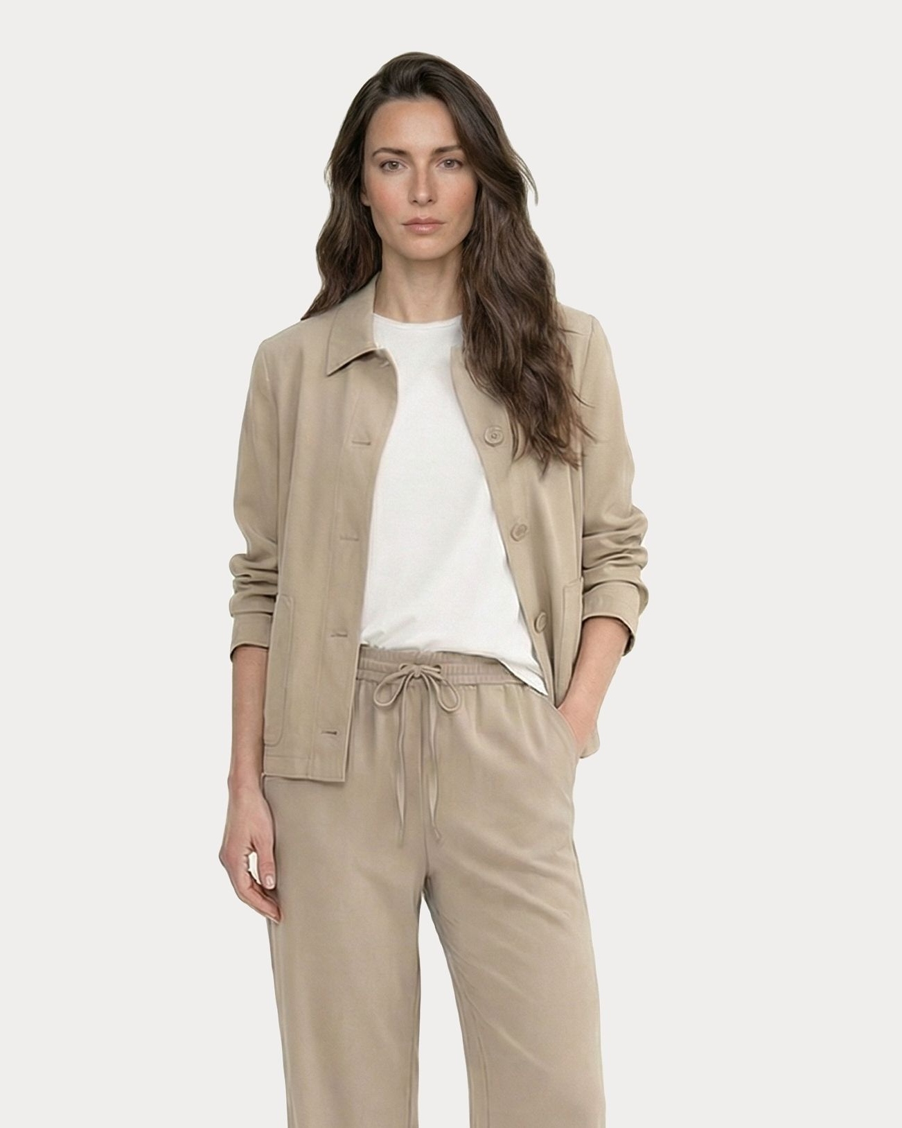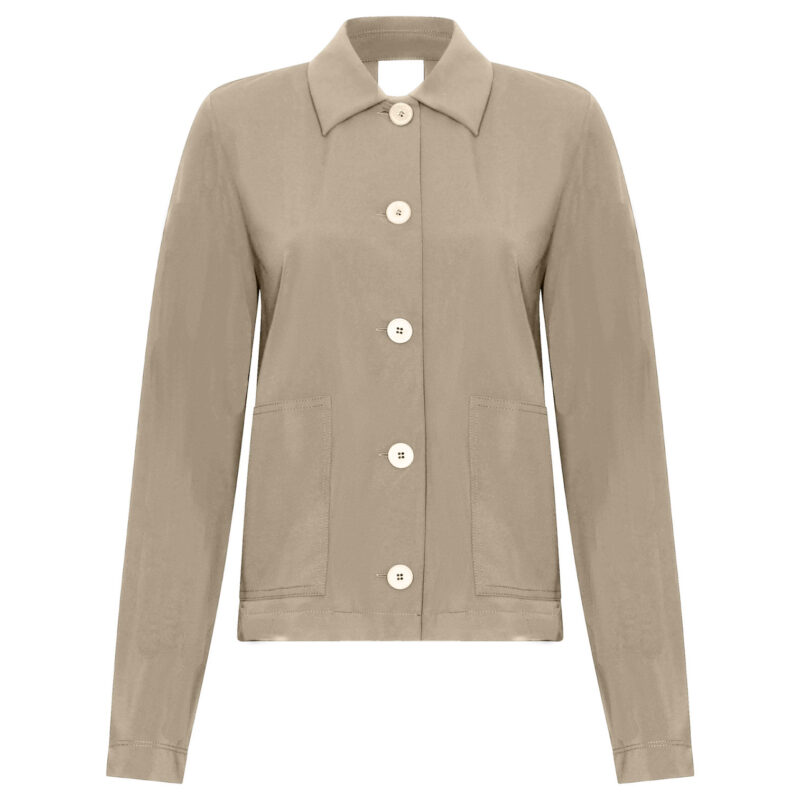 Japan TKY Blazer „Chisami“ Spiaggia. Der Japan TKY Blazer „Chisami“ Spiaggia ist ein stilvoller Blazer aus komfortablem Technostretch. Er zeichnet sich durch einen spitz zulaufenden Kragen aus, der eine moderne, elegante Silhouette schafft. Dezente Schulterpolster sorgen für eine gleichmäßige Formgebung der Schulterlinie, ohne aufzutragen. Die Knopfleiste verläuft durchgängig und betont die klare Linienführung des Blazers. Die Ärmel sind lang und leicht spitz zulaufend, was eine smarte, figurnahe Passform unterstützt. Die Manschetten zeigen eine Doppellagigkeit, die dem Look eine raffinierte Note verleiht. Ton-in-Ton-Knöpfe runden das stilvolle Erscheinungsbild ab. Der Material-Mix sorgt für eine formstabile, angenehme Dehnung und garantiert hohen Tragekomfort. Insgesamt vermittelt der Blazer eine moderne, elegante Ausstrahlung und eignet sich ideal für Business- oder Casual-Looks.