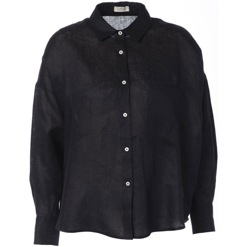 Jc Sophie Bluse „Leona Black“. Die Jc Sophie Bluse „Leona Black“ ist der perfekte Begleiter für warme Tage. Durch ihre luftige Beschaffenheit sorgt sie für ein angenehmes Tragegefühl im Sommer und überzeugt gleichzeitig mit einer klassischen, zeitlosen Form. Das weiche Material aus 100 % Leinen liegt leicht auf der Haut und bietet hohen Tragekomfort. Dank ihres schlichten Designs lässt sich die Bluse vielseitig kombinieren – ob lässig zur Shorts, elegant zur Stoffhose oder stilvoll im Büro. Ein unkompliziertes Lieblingsstück, das Komfort und Stil harmonisch vereint.