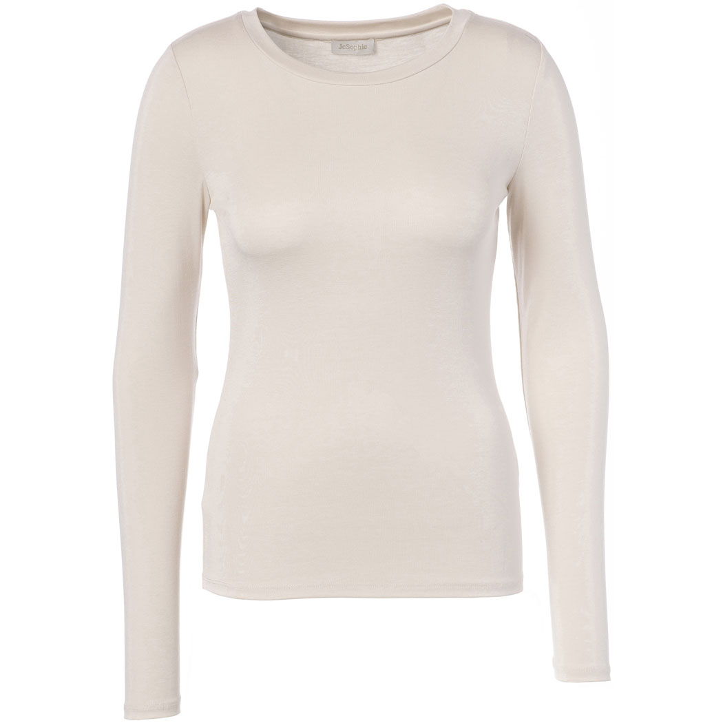 Jc Sophie Langarmshirt „Luca Sand“. Dieses Langarmshirt ist ein zeitloses Basic, das in keinem Kleiderschrank fehlen darf. Mit seiner klassischen Form überzeugt es durch eine klare, schlichte Optik und lässt sich vielseitig kombinieren. Das weiche Material sorgt für ein angenehmes Tragegefühl und macht das Shirt zum idealen Begleiter für den ganzen Tag. Ob lässig zur Jeans, als Layering-Piece unter Strick oder Blazer oder stilvoll im Büro – dieses Langarmshirt passt sich Deinem Look mühelos an. Ein unkompliziertes Essential, das Komfort und Stil perfekt vereint.