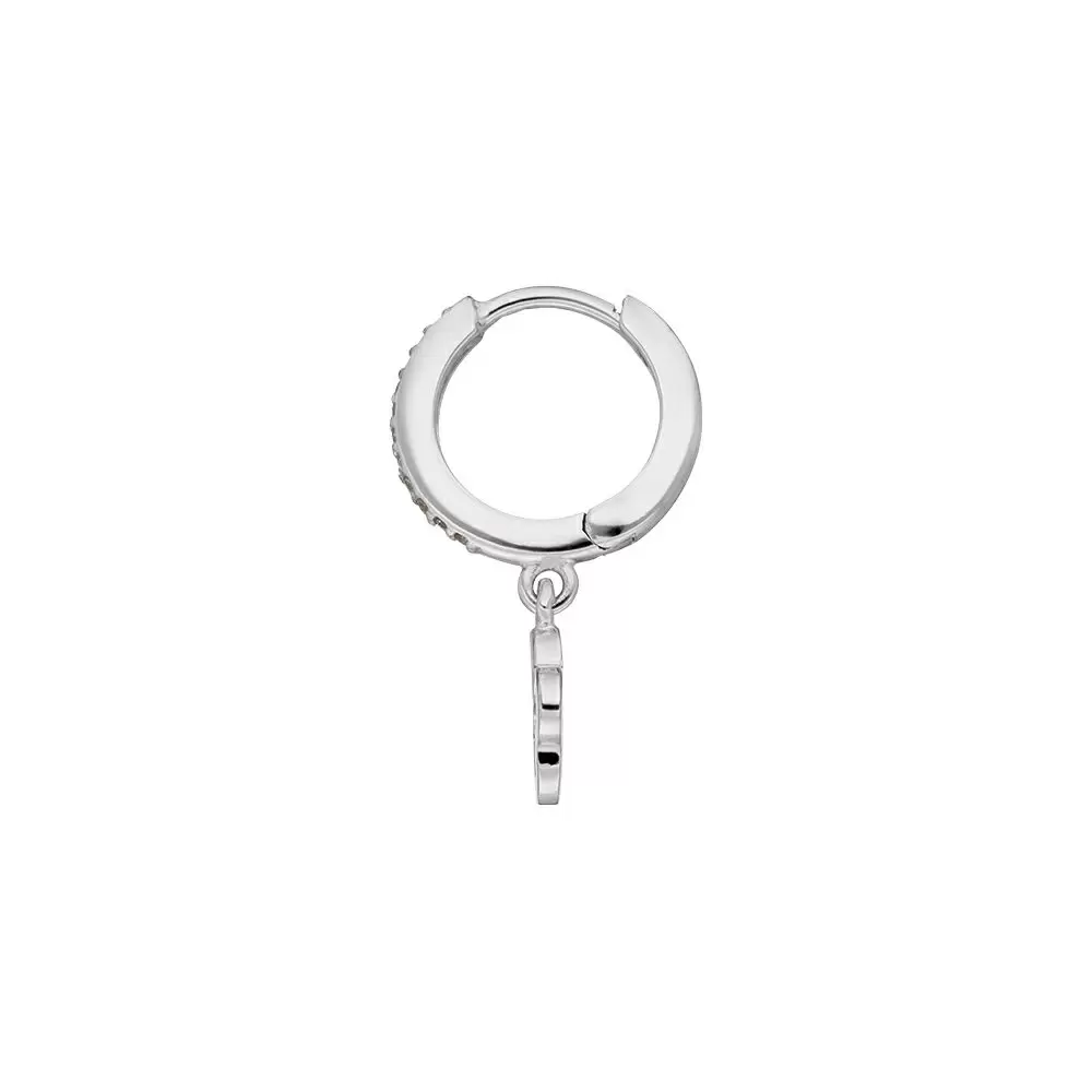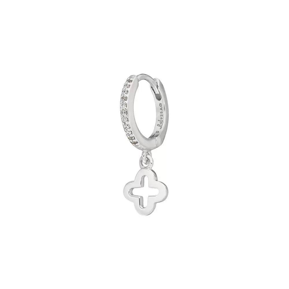 Leaf Single Creole „Clover Zirkonia“ 925 Sterlingsilber. Zartes und trendiges Design zusammen vereint – Diese entzückende Mini Creole besticht mit ihrer filigranen und dennoch verspielten Optik. Ein glänzendes Kleeblatt hängt an der mit Zirkoniasteinen geschmückten Creole aus rhodiniertem 925 Sterlingsilber und macht sie damit zu einem ganz besonderen Schmuckstück. Die Creole lässt sich ganz einfach mit anderen schlichten Hoop Earrings und Steckern kombinieren. Zaubere also mit diesem Eyecatcher ein dezentes Highlight und vervollständige Deinen individuellen Look.