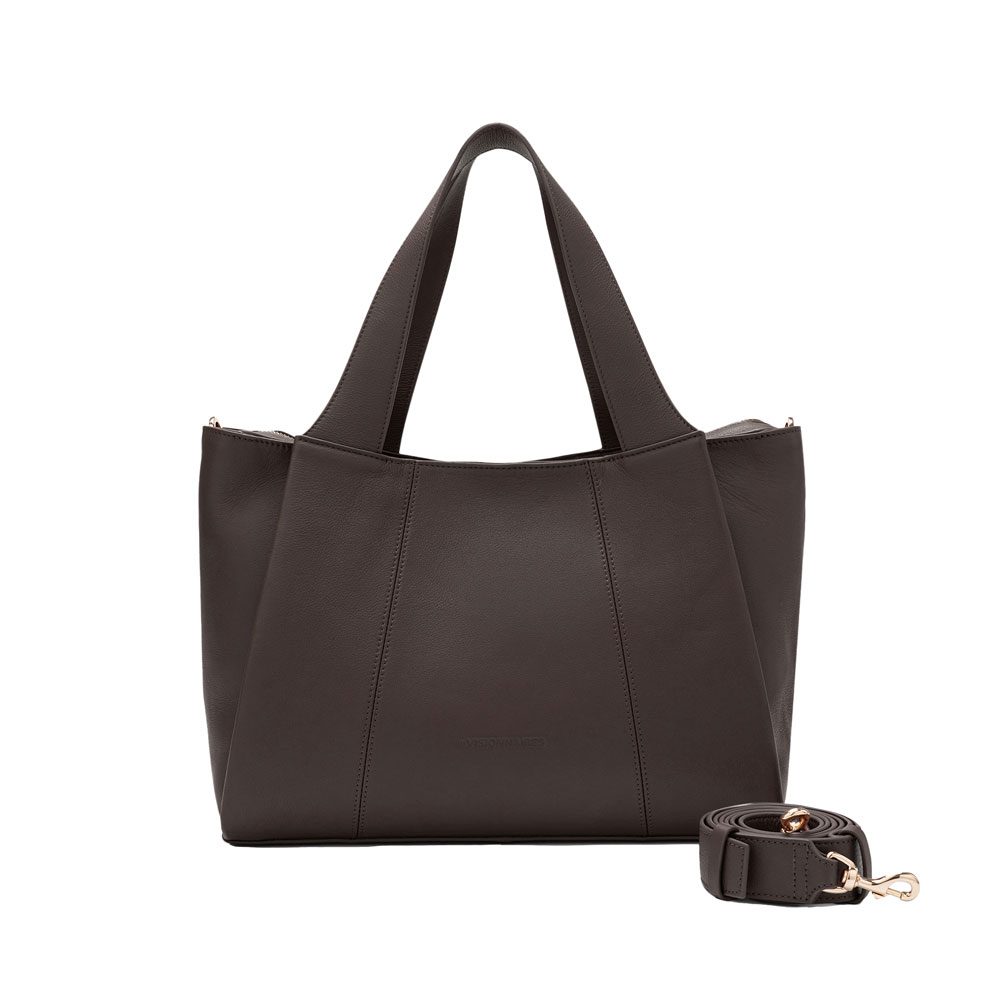 Les Visionnaires Tasche „Chenelle Essential Soft Grainy“ chocolate. Die Chenelle Essential Soft Grainy präsentiert sich in einer modernen, klar strukturierten Shopper-Form mit eleganter Ausstrahlung. Der leicht trapezförmige Korpus öffnet sich nach oben und bietet eine harmonische Balance zwischen Weite und Formstabilität. Dezente, vertikale Nähte verleihen der Tasche eine subtile Gliederung und unterstreichen das minimalistische Design.