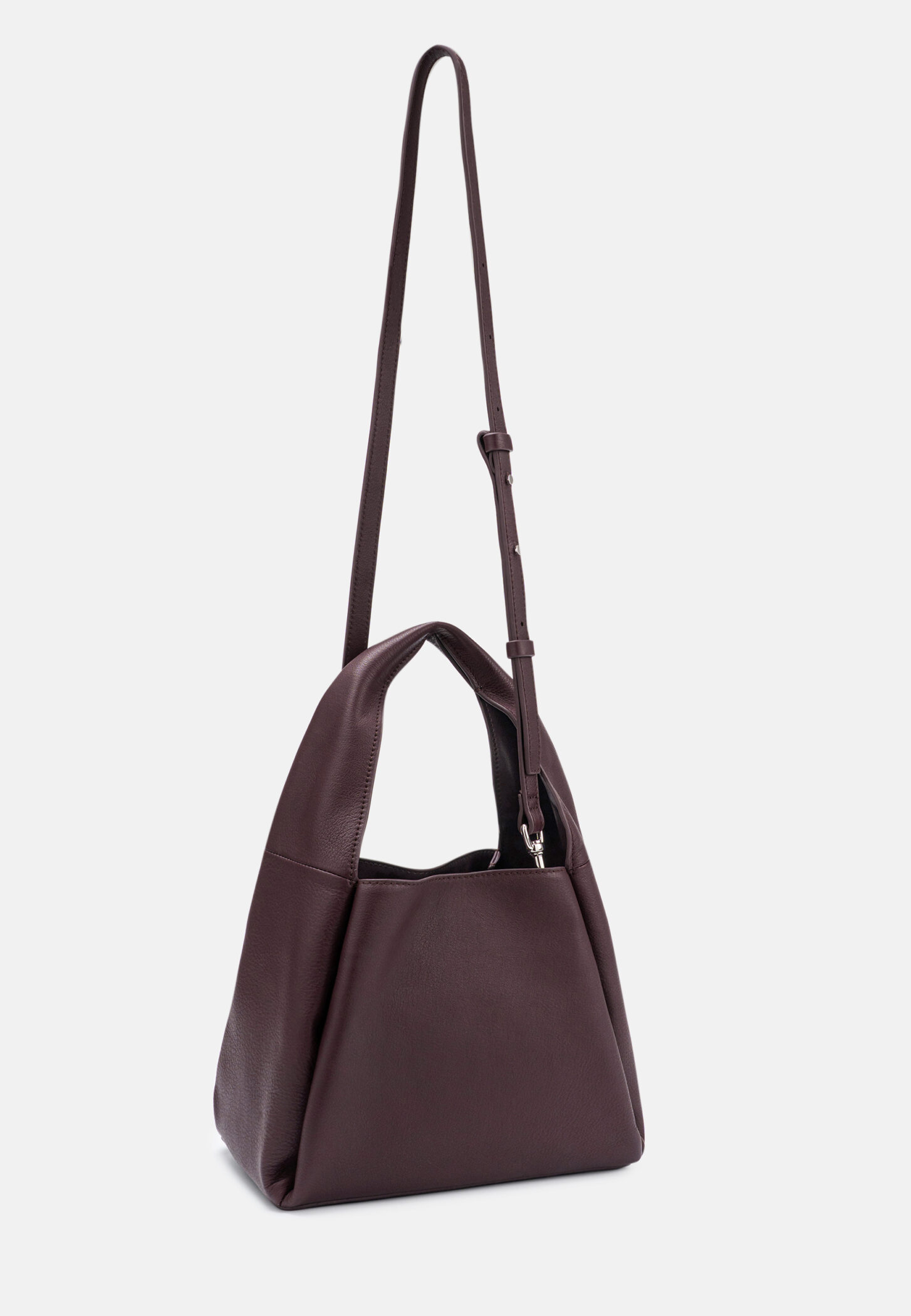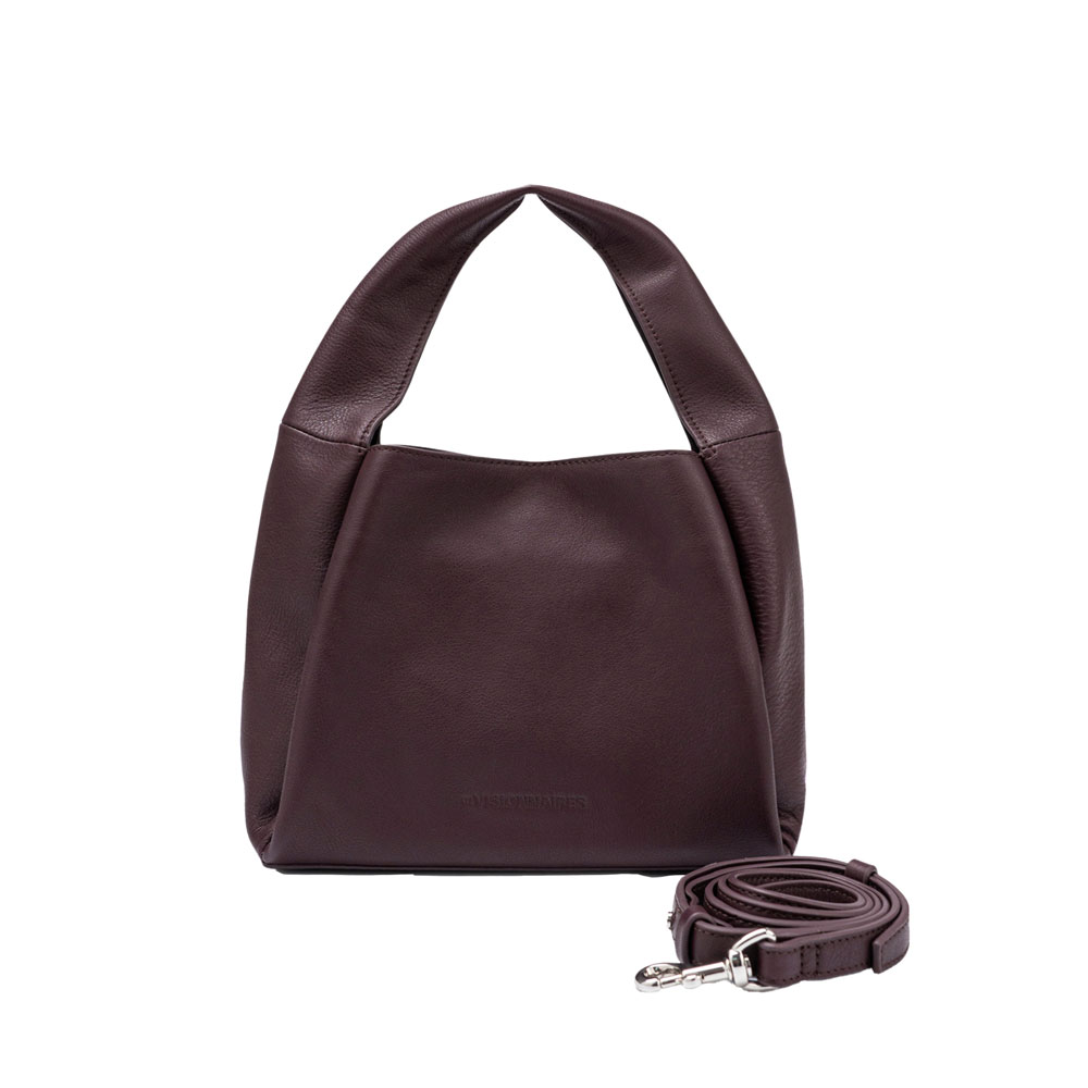 Les Visionnaires Tasche „Coralie Essential Soft Grainy“ aubergine. Die Coralie Essential Soft Grainy ist mehr als nur eine Tasche – sie überzeugt mit einer klaren, modernen Silhouette und einer besonders weichen, skulpturalen Form. Der sanft strukturierte Korpus fällt elegant nach unten und verleiht ihr eine ruhige, minimalistische Ausstrahlung, während das hochwertige Leder für eine edle, geschmeidige Haptik sorgt.