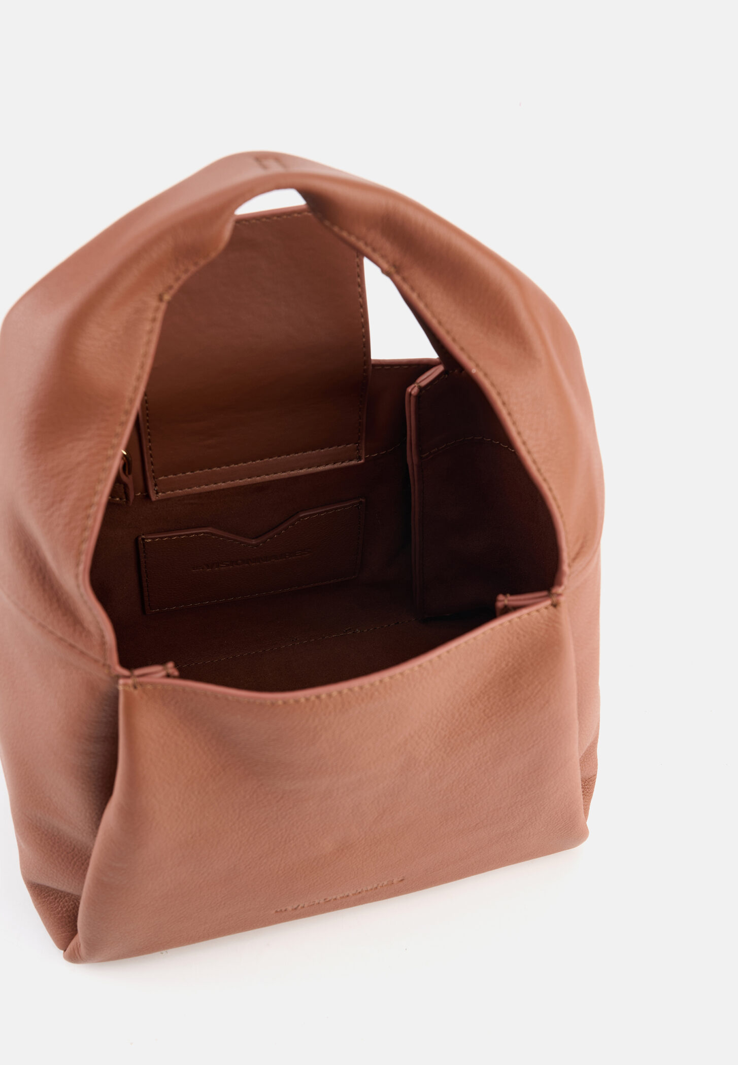 Der breite, weich gepolsterte Henkel schmiegt sich angenehm an die Schulter und unterstreicht den lässig-luxuriösen Look. Gleichzeitig sorgt seine markante Form für einen spannenden Kontrast zur puristischen Linienführung der Tasche.