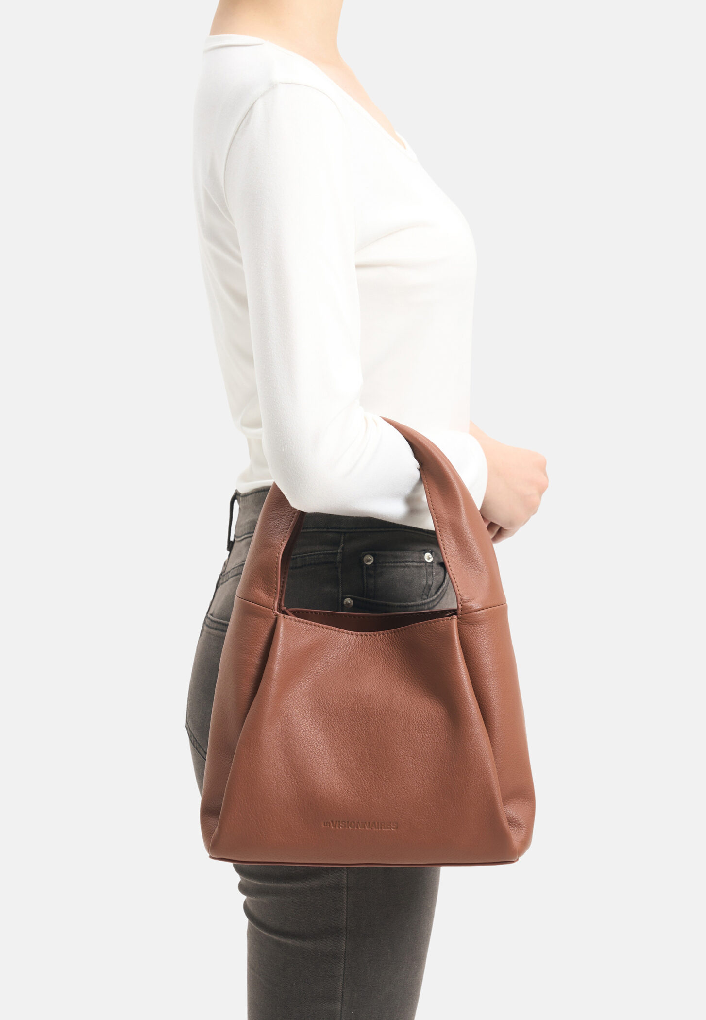 Les Visionnaires Tasche „Coralie Essential Soft Grainy“ chestnut. Die Coralie Essential Soft Grainy ist mehr als nur eine Tasche – sie überzeugt mit einer klaren, modernen Silhouette und einer besonders weichen, skulpturalen Form. Der sanft strukturierte Korpus fällt elegant nach unten und verleiht ihr eine ruhige, minimalistische Ausstrahlung, während das hochwertige Leder für eine edle, geschmeidige Haptik sorgt.