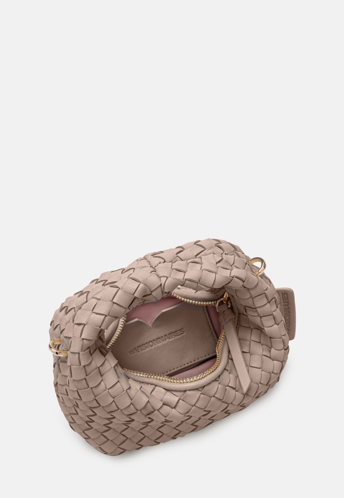 Les Visionnaires Tasche „Greta Micro Weave Silky“ cappuccino beige. Die GRETA MICRO WEAVE SILKY ist ein neues, außergewöhnliches It-Piece, inspiriert von unserer beliebten Mini Greta. Noch kompakter und auffälliger, überzeugt diese Handtasche durch feine Lederhandwerkskunst und modernes Design. Sie verfügt über einen großen Crossbody-Gurt und ist ideal für alle, die kleine, markante Accessoires lieben.