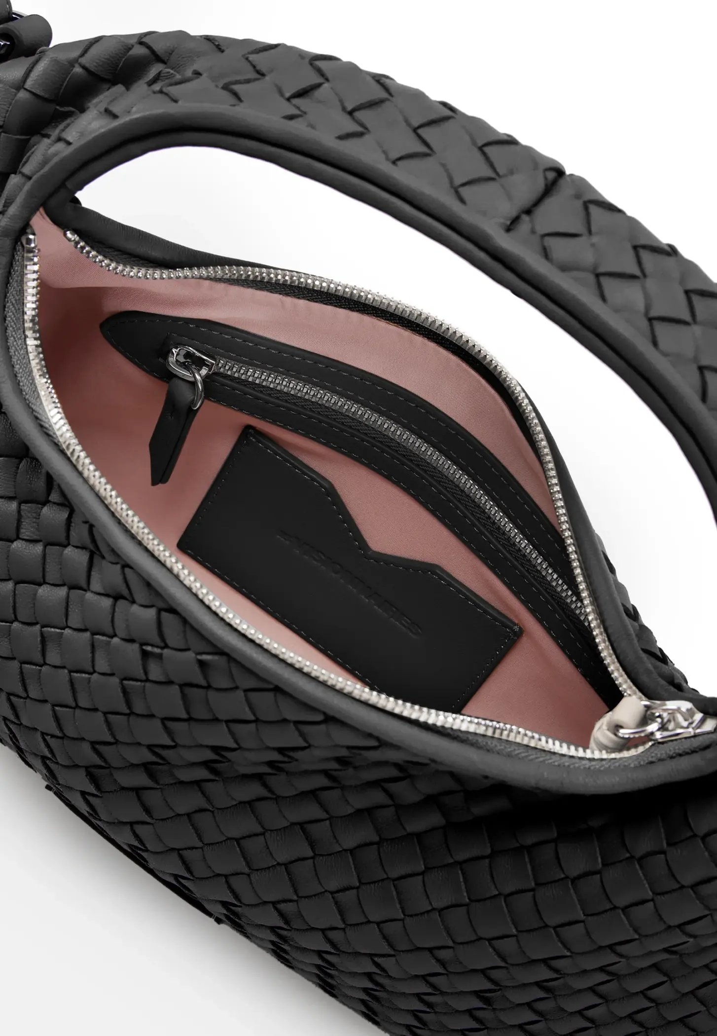 Les Visionnaires Tasche „Sadie Weave Silky“ black. Die SADIE WEAVE SILKY ist die perfekte kleine Tasche für dein Wochenende oder dein Date Night. Ihr elegantes und vielseitiges Design macht sie zu einem Must-Have. Das handgefertigte, gewebte Leder aus unserem Silky Leder verleiht ihr eine raffinierte und schicke Note, die perfekt zur urbanen und trendigen Modewelt passt. Ob Tag oder Nacht, diese Tasche begleitet dich stilvoll und funktional.