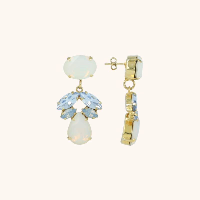Lott Gioielli Ohrringe „Joni Flower Drop M Blue“. Dieser Ohrringe strahlt verspielte Eleganz aus. Diese Ohrringe mit Strasselementen und floralen Details haben eine mittlere Länge und einen brillanten Glanz. Ihr mittleres Gewicht sorgt für eine feine Balance zwischen Präsenz und Tragekomfort. Ein charmantes Schmuckstück, das Weiblichkeit und Luxus vereint.