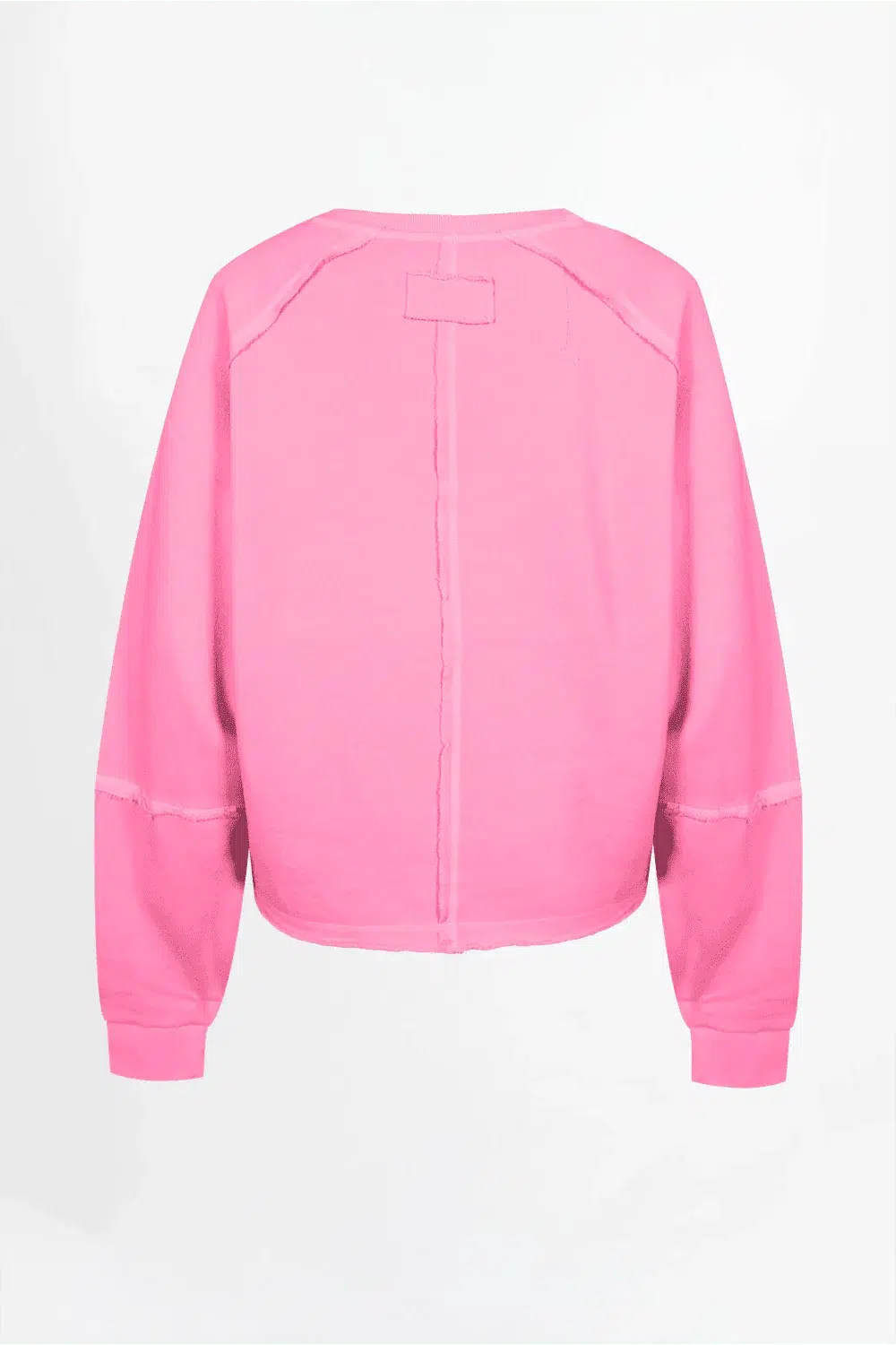 Love Joy Victory Sweatshirt „Hibiskus“. Das Oversize-Sweatshirt hat einen V-Ausschnitt und eine lockere, großzügige Passform. Die Ärmel sind weit und enden in breiten Bündchen, die für eine markante Silhouette sorgen. Eine Ziernaht läuft über Schultern, Ärmel und Rückseite und verleiht dem Piece strukturierte Details. Der Saum und der Ausschnitt sind leicht fransig, was einen lässigen Look unterstreicht. Auf der rechten Rückseite befindet sich eine kleine Elefant-Stickerei, die dem Design eine charmante Note verleiht.