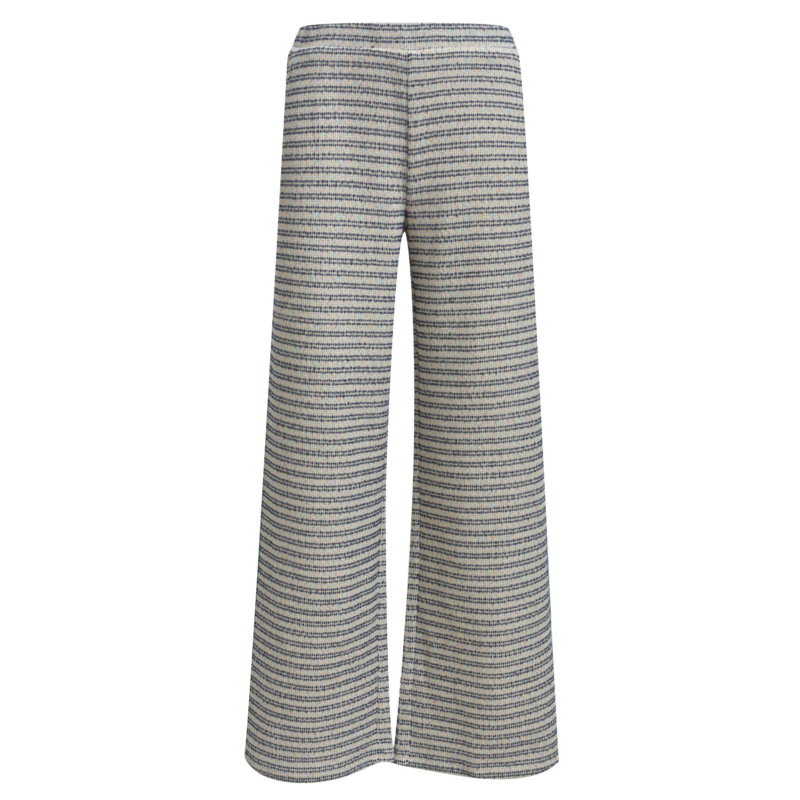 Milano Italy Hose Strick „Offwhite/Blau“. Die Milano Italy Hose „Offwhite/Blau“ besticht durch ein weites, gerades Bein, das eine lockere, bequeme Silhouette schafft. Der Gummibund sorgt für Komfort und eine flexible Passform, während die integrierten Taschen praktische Möglichkeiten zum Verstauen von Kleinigkeiten bieten. Das Strickmaterial verleiht der Hose eine sanfte, elastische Struktur und der Einsatz von Lurexfäden sorgt für einen dezenten, eleganten Glanz. Der Materialmix verbindet Tragekomfort mit guter Formstabilität.