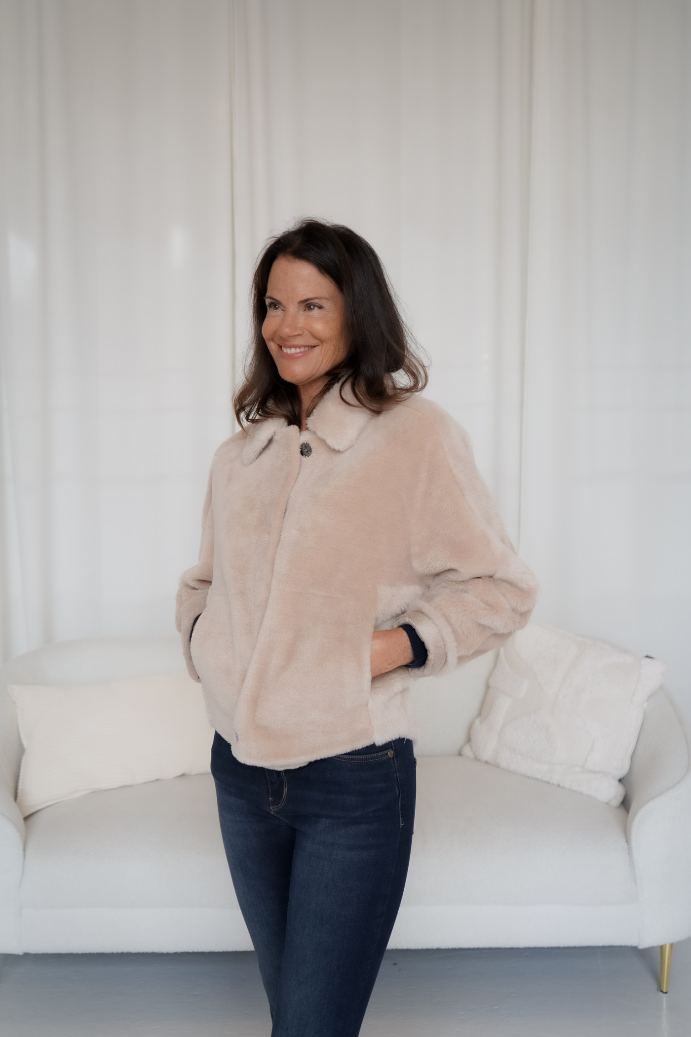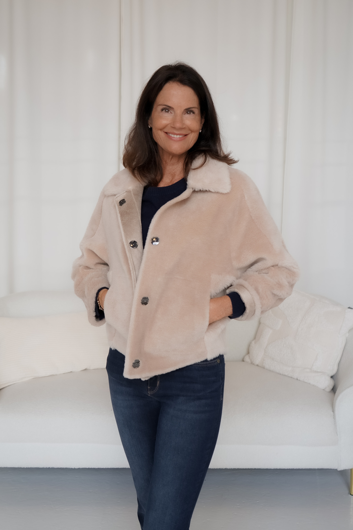 Gefertigt aus hochwertigem Faux Shearling überzeugt die Jacke mit einem luxuriösen Look und einem besonders weichen Tragegefühl. Das clevere wendbare Design bietet Ihnen zwei Styles in einem – für maximale Vielseitigkeit und individuelle Looks.