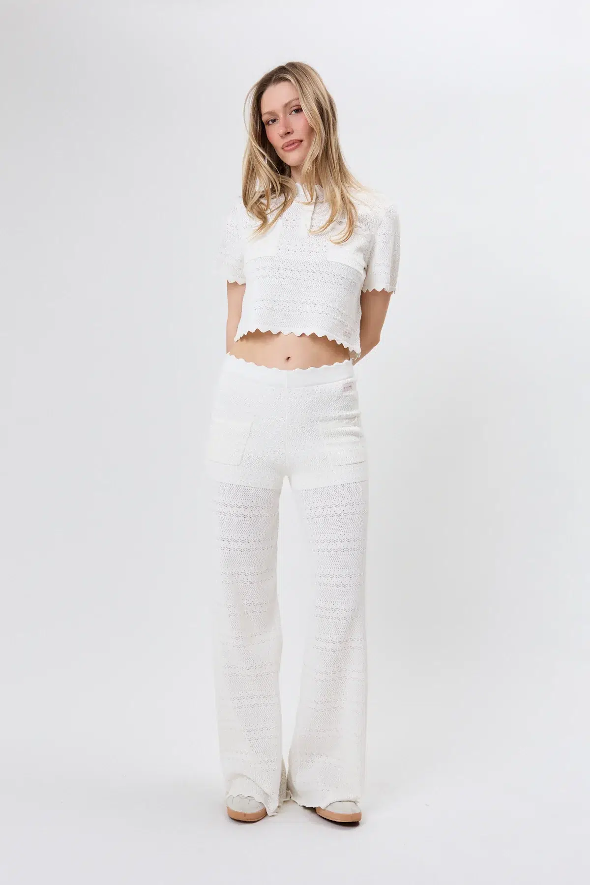 Oh April Hose „Aurea Off White“. Die „Aurea“ Hose von OH APRIL überzeugt mit ihrer femininen Silhouette und einer feinen Strickoptik, die dem Look eine besondere Leichtigkeit verleiht. Der schmale Schnitt sorgt für eine elegante Passform, während die strukturierte Oberfläche und die liebevollen Details einen modernen, hochwertigen Charakter unterstreichen. Aufgesetzte Taschen und das dezente OH APRIL Label am Bund runden das Design stilvoll ab. In Kombination mit dem passenden Oberteil entsteht ein harmonisches Set, das sowohl gemütlich als auch stilvoll wirkt.