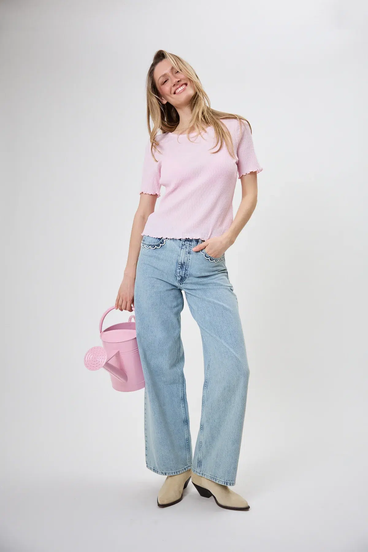 Oh April T-Shirt „Lune Regular Baby Rose“. Das „Lune Regular“ T-Shirt von OH APRIL überzeugt mit seiner schlichten, femininen Optik und ist ein vielseitiges Basic für jeden Tag. Der klassische Schnitt sorgt für eine bequeme Passform, während der leicht verspielte Saumabschluss dem Design eine besondere, zarte Note verleiht. Die dezente OH APRIL Stickerei auf der Brust rundet den Look stilvoll ab und setzt einen hochwertigen Markenakzent. Perfekt kombinierbar zu Denim, Röcken oder unter Strick – ein unkompliziertes Essential für jede Garderobe.