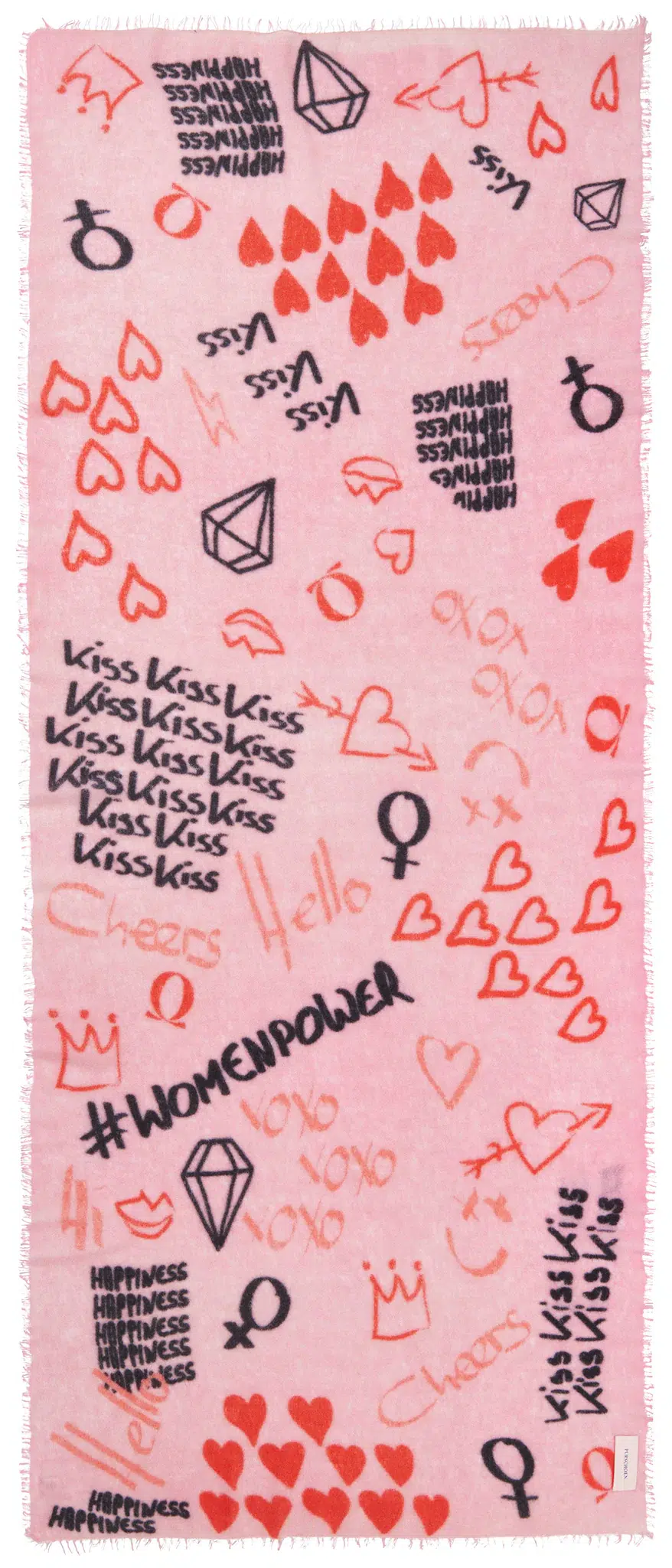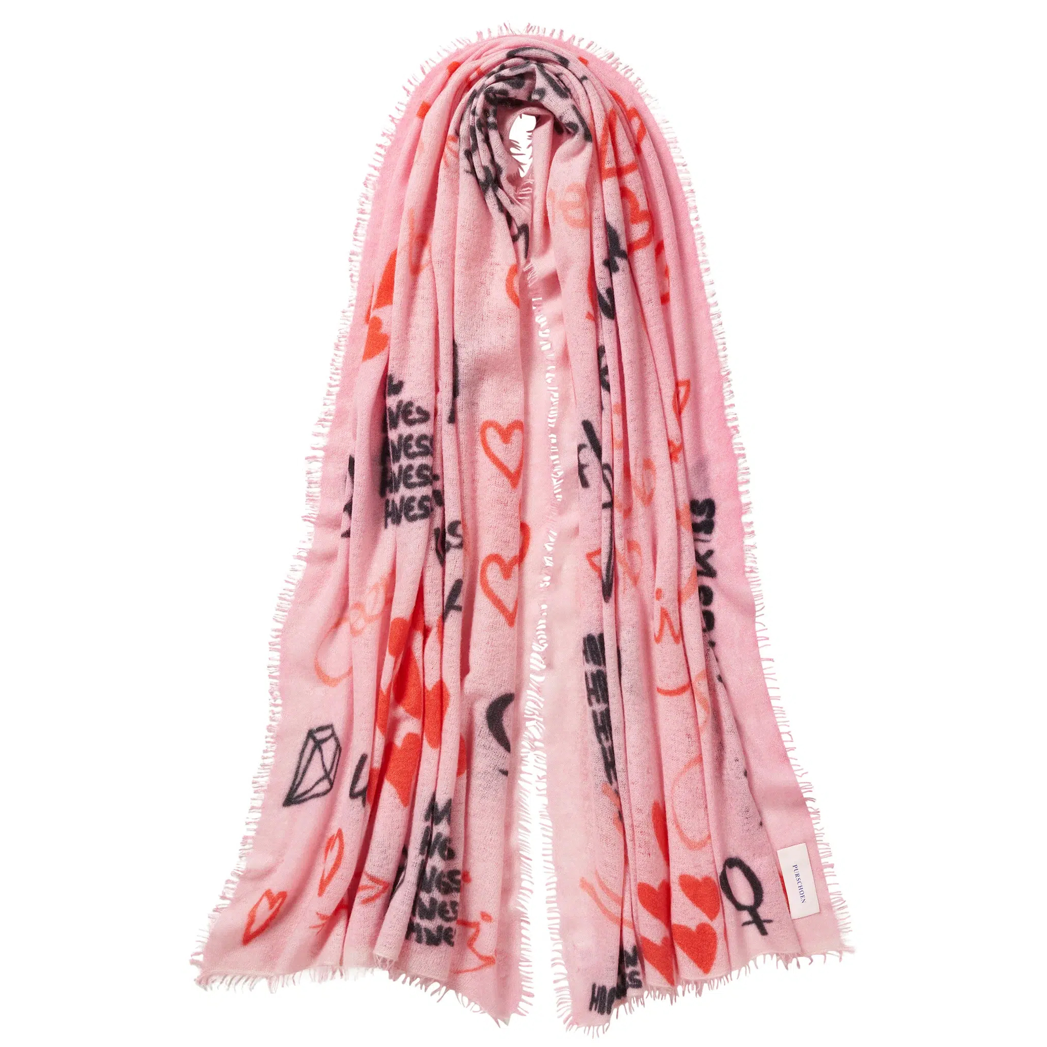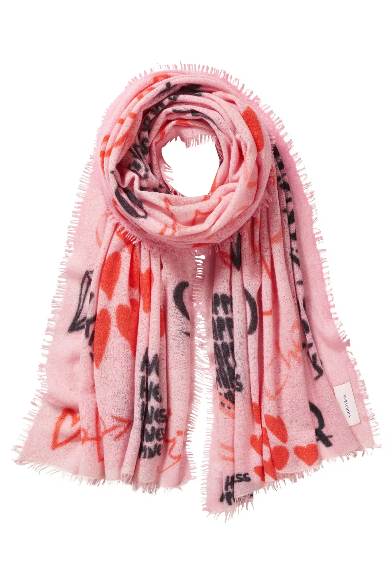 PUR SCHOEN Kaschmirschal “Graffiti LOVE Puder Pink”