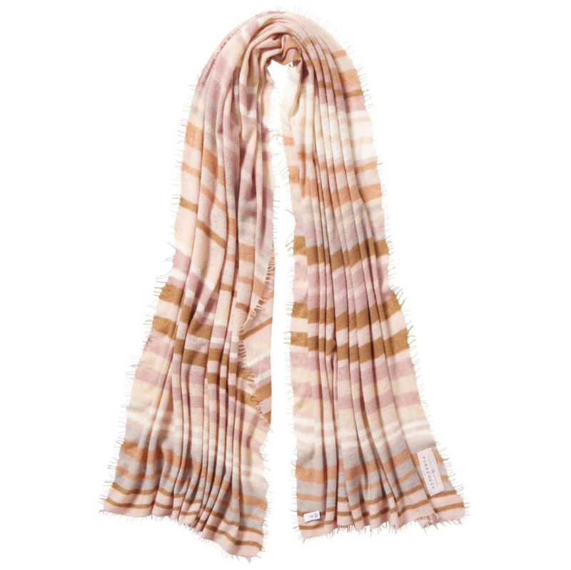 PUR SCHOEN Kaschmirschal „Rainbow Brown Dream“. Grundlage für den Schal mit dem Label PUR CASHMERE ist die reine, zertifizierte Kaschmirwolle in ihrer biologischen Urform, frei von jeglicher Beimischung. Die Rohwolle stammt aus der Region Tibet sowie der Mongolei, der natürlichen Heimat der Kaschmirziege. Eine ausgeklügelte Stricktechnik erzeugt die Voraussetzung für eine besonders leichte, transparente Struktur. Bedeutsam ist hierbei das feine Kaschmirgarn aus traditioneller Verarbeitung. Der Kaschmirschal von PUR SCHOEN wird in einer Fertigungsstätte in Nepal, in einem einzigartigen Verfahren, mehrfach gewaschen und in sorgfältiger Handarbeit gefilzt. Das Tragegefühl kann man erleben und macht den Schal zu einem ausnahmslos kuscheligen, unverzichtbaren modischen Begleiter.