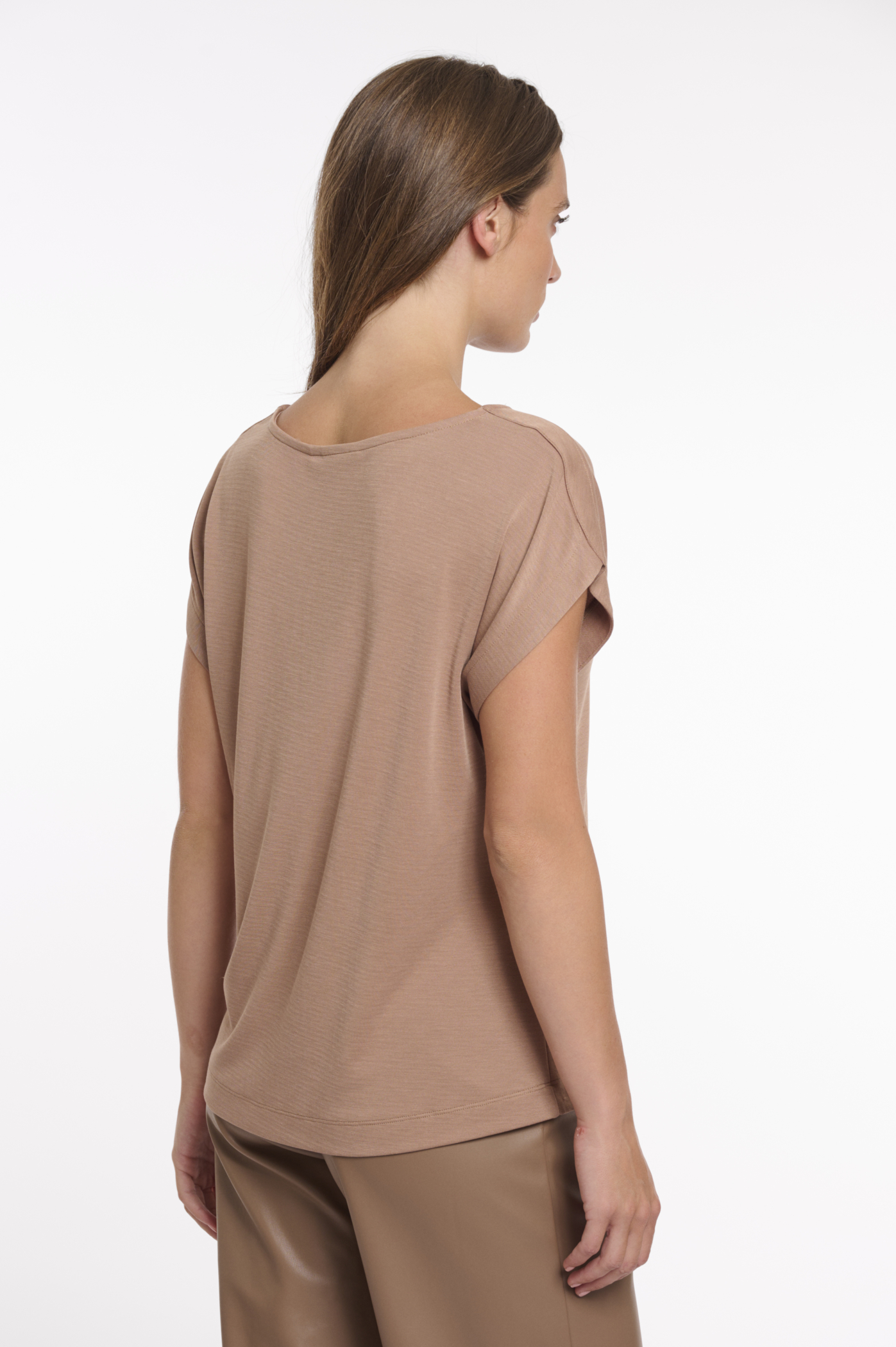 Rino & Pelle T-Shirt „Faiya Rosy Brown“. Das T-Shirt „Faiya“ von Rino & Pelle überzeugt mit einer cleanen, zeitlosen Optik und einem besonders weichen, fließenden Material. Der lockere Schnitt sorgt für ein angenehmes Tragegefühl und eine entspannte Silhouette, während der klassische Rundhalsausschnitt und die dezent angeschnittenen Ärmel dem Design eine moderne, feminine Note verleihen.