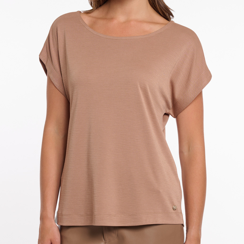 Der warme Farbton „Rosy Brown“ macht das Shirt zu einem vielseitigen Basic, das sich mühelos kombinieren lässt – ob casual zu Jeans, elegant unter einem Blazer oder als Teil eines abgestimmten Loungewear-Looks. Ein unkompliziertes Essential für jeden Tag, das Komfort und Stil perfekt vereint.