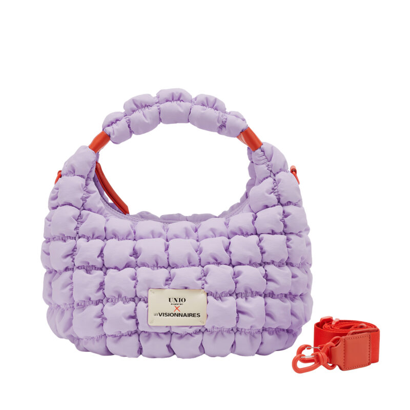 Unio Hamburg x Les Visionnaires Tasche „Kitzbuehel S Bubble Lilac“. Ein Statement-Piece mit Charakter: Die Kitzbühel S Bubble aus der exklusiven Kollaboration Unio Hamburg x Les Visionnaires vereint modernes Design mit urbaner Eleganz. Die ikonische Bubble-Struktur trifft auf eine frische, ausdrucksstarke Farbgebung und macht die Tasche zum perfekten Begleiter für alle, die Stil selbstbewusst leben.