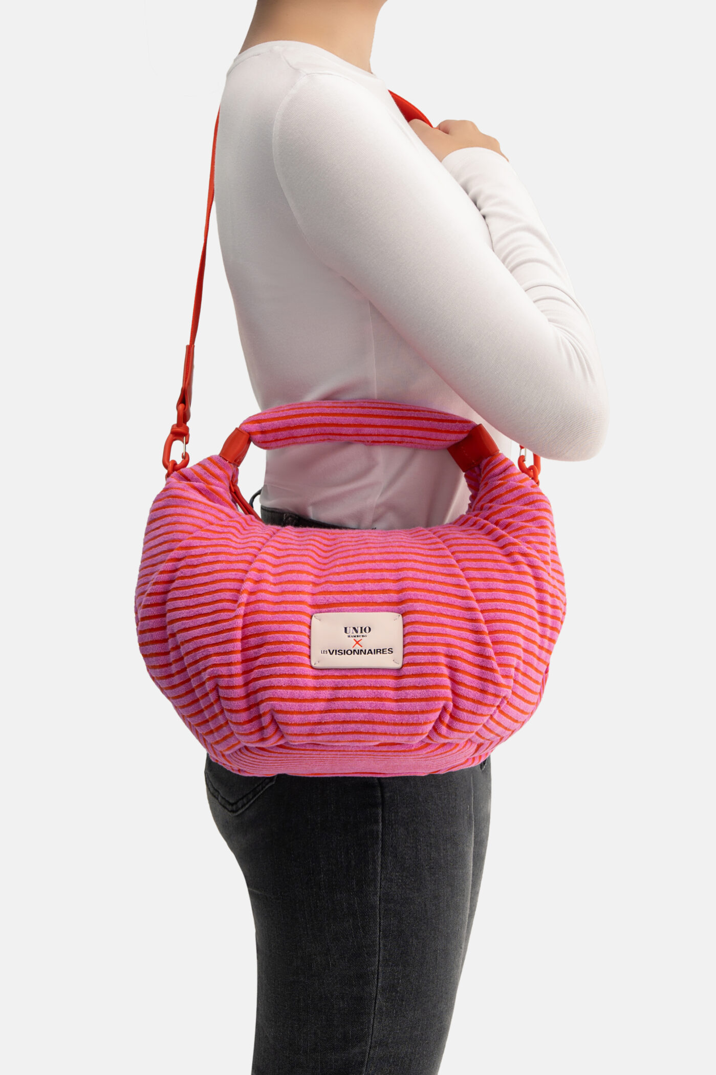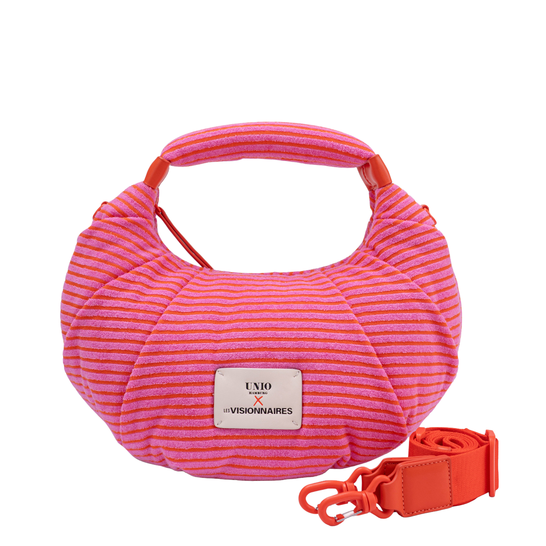 Unio Hamburg x Les Visionnaires Tasche „Kitzbuehel S Frottee Pink/Rot“ vereint norddeutsche Klarheit mit alpiner Lässigkeit. Der softe Frottee-Stoff verleiht der Tasche eine besondere Haptik und macht sie zum stilvollen Begleiter für jeden Tag.