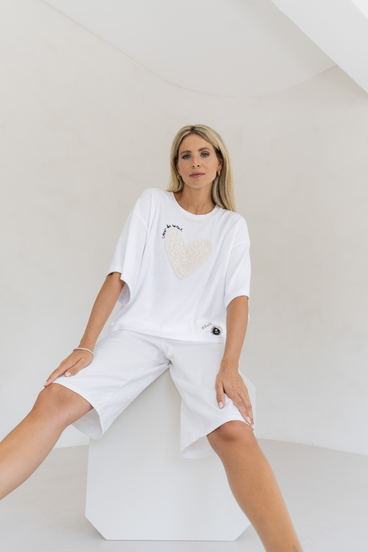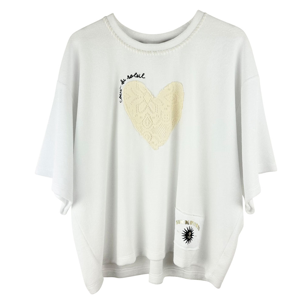 Yippie Hippie Shirt „Coeur du soleil“ *Neue Kollektion*. Dieses Shirt von Yippie Hippie versprüht pure Lebensfreude und entspannten Boho-Charme. Die weiche Frottee-Optik sorgt für eine besondere Haptik und einen lässigen, hochwertigen Look. Blickfang ist das aufgenähte Häkel-Herz, das dem Design eine handgemachte, liebevolle Note verleiht und perfekt mit dem Schriftzug „Coeur de soleil“ harmoniert.
