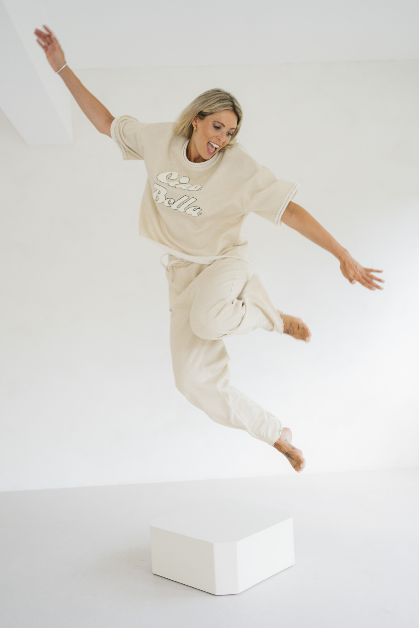 - Textil-flauschiger „ciao bella“ Print mit besonderer Haptik